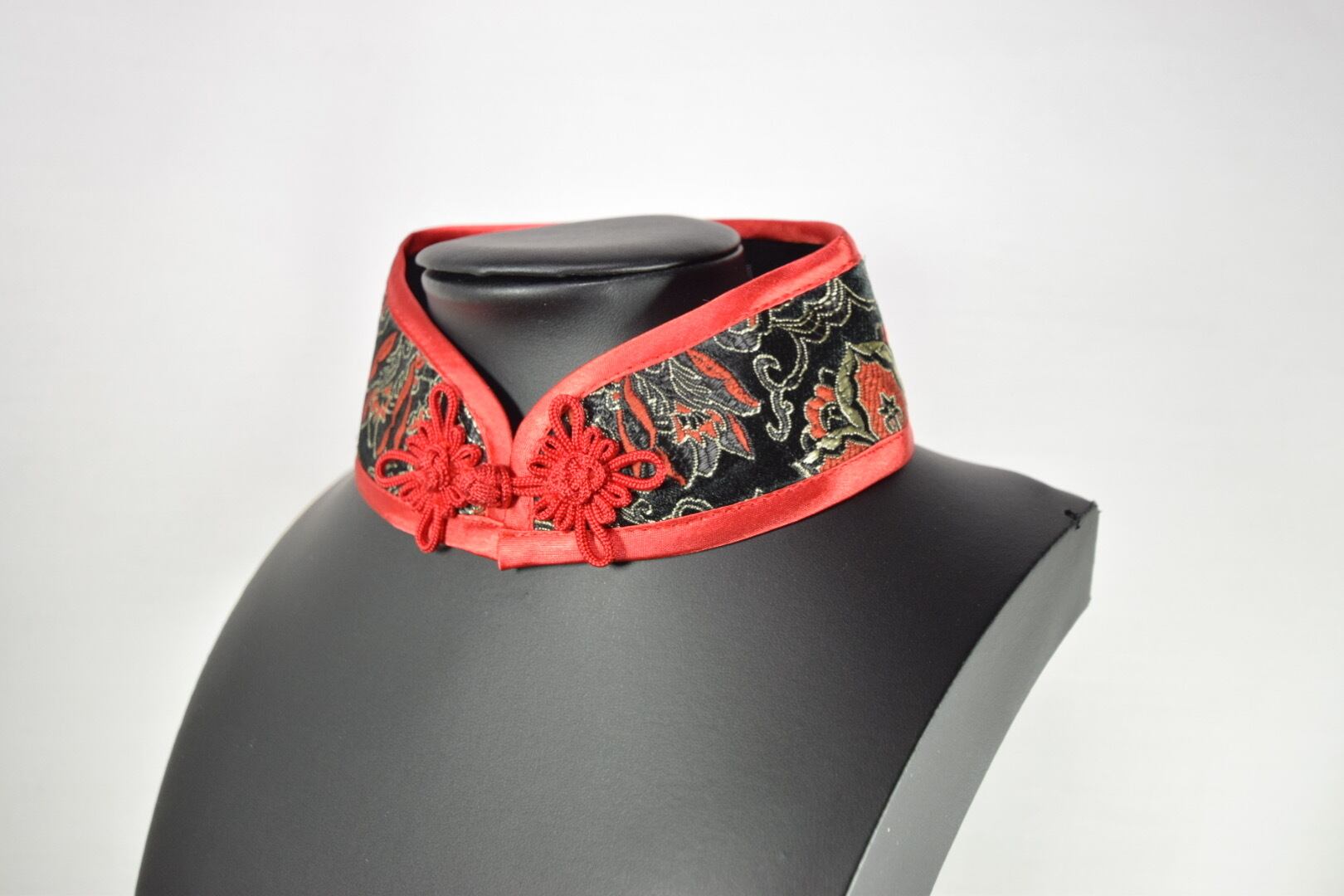 中華襟チョーカー(赤蓮華)Sサイズ[AR-SC119]