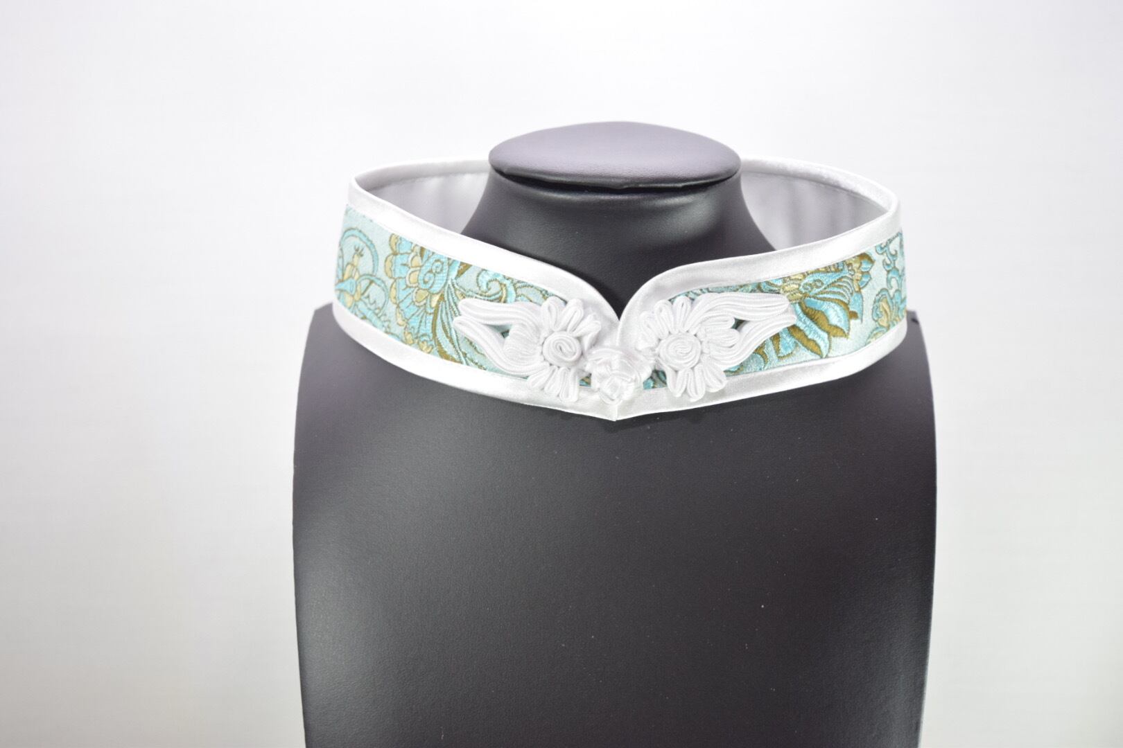 中華襟チョーカー(白翠)Lサイズ[AR-SC124]