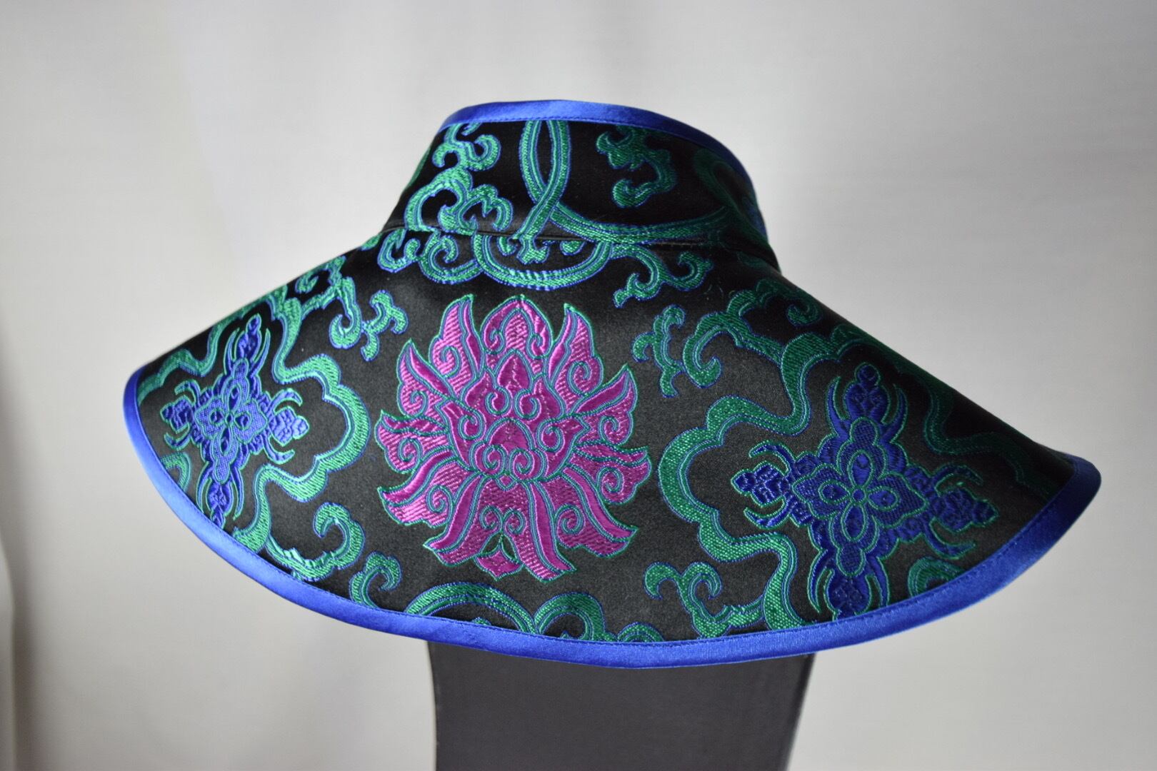 生地:黒地に青、緑の紋様とショッキングピンクの蓮紋様