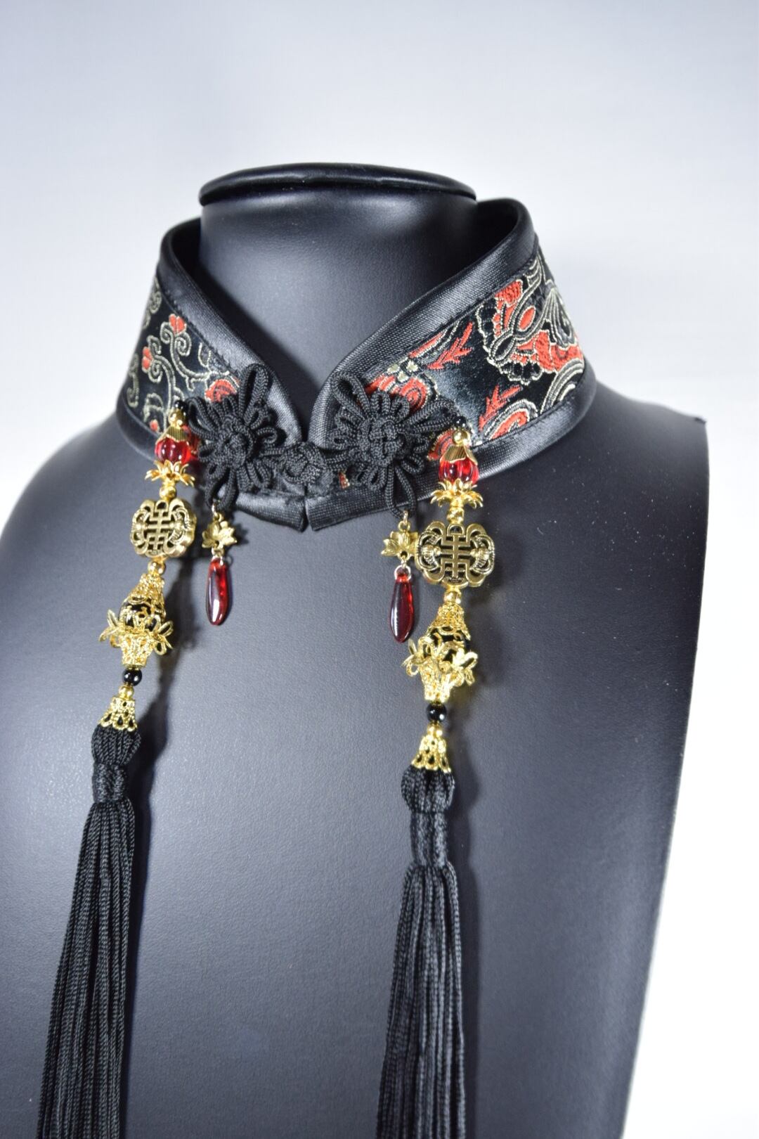 中華襟チョーカー(赤蓮華)Sサイズ[AR-SC129]