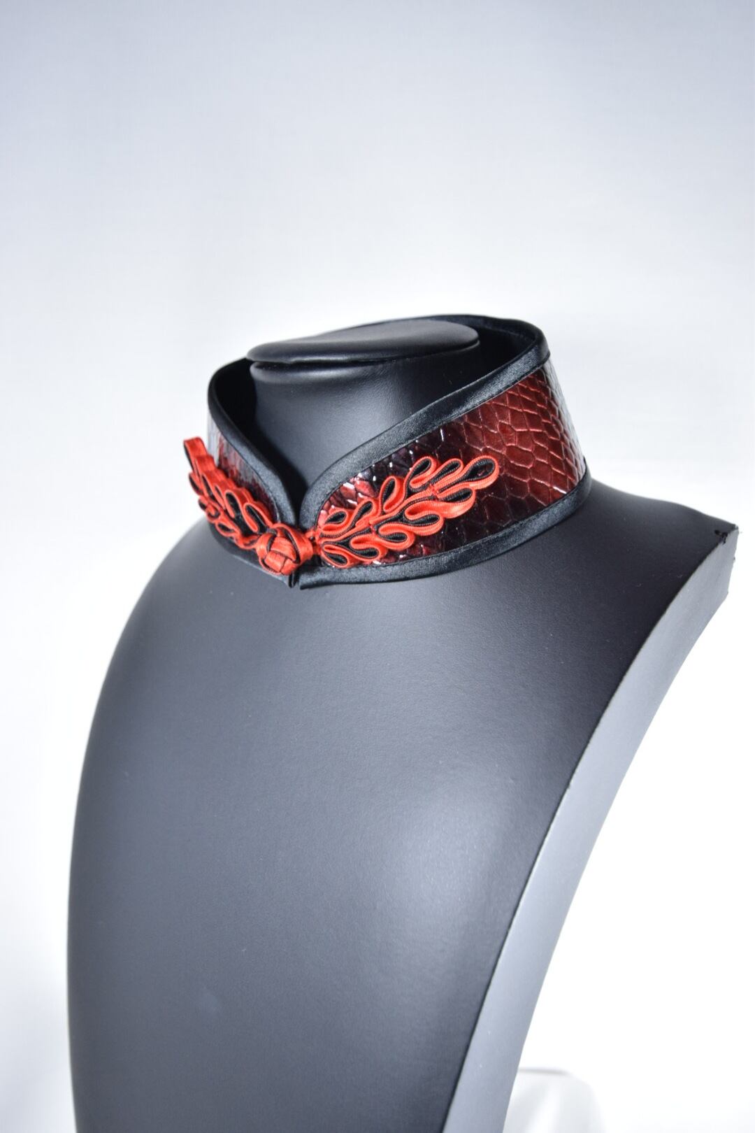 中華襟チョーカー(合皮赤黒蛇)Sサイズ[AR-SFL034]