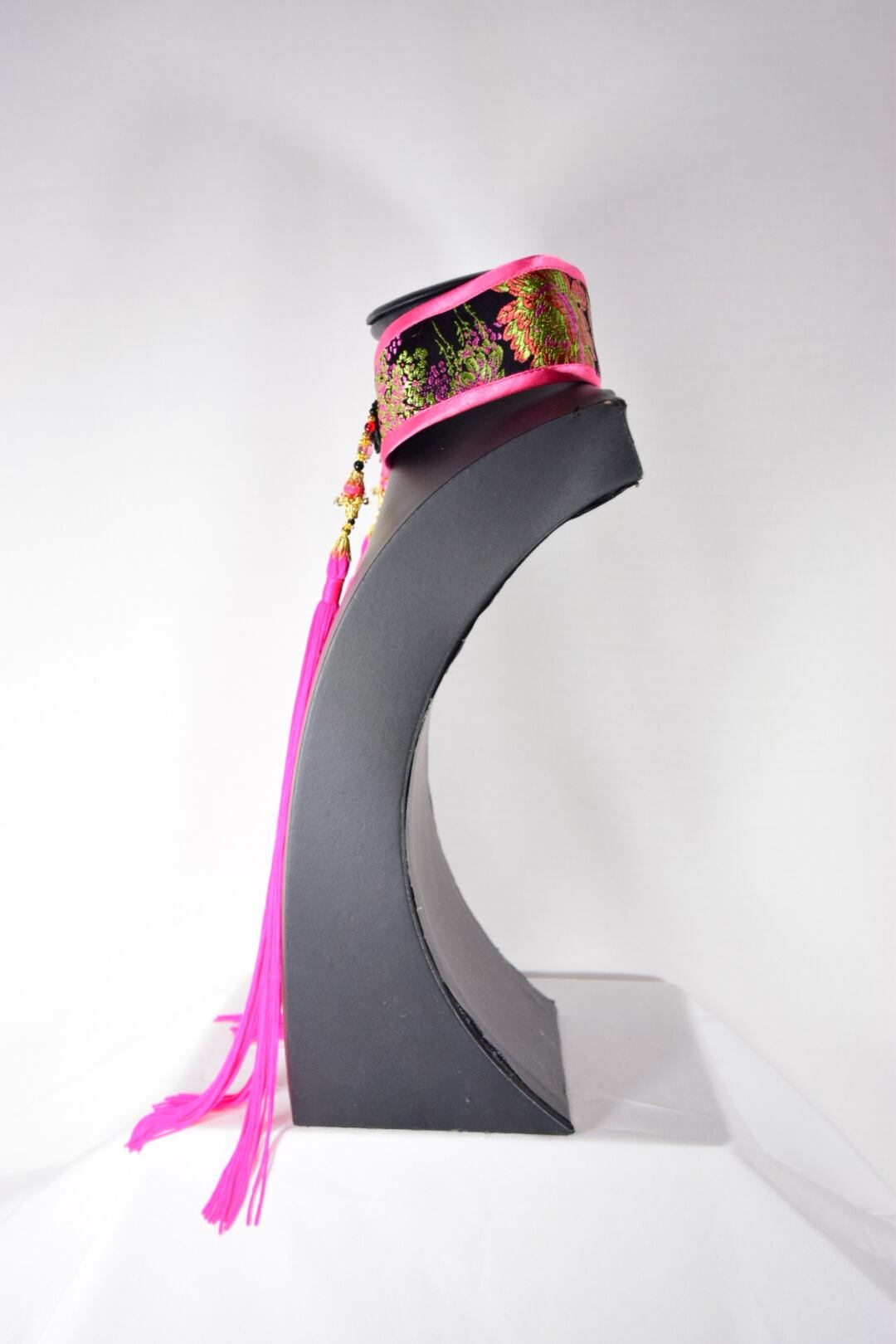 装飾:蛍光ピンク、黒、赤系ビーズ、金色の装飾