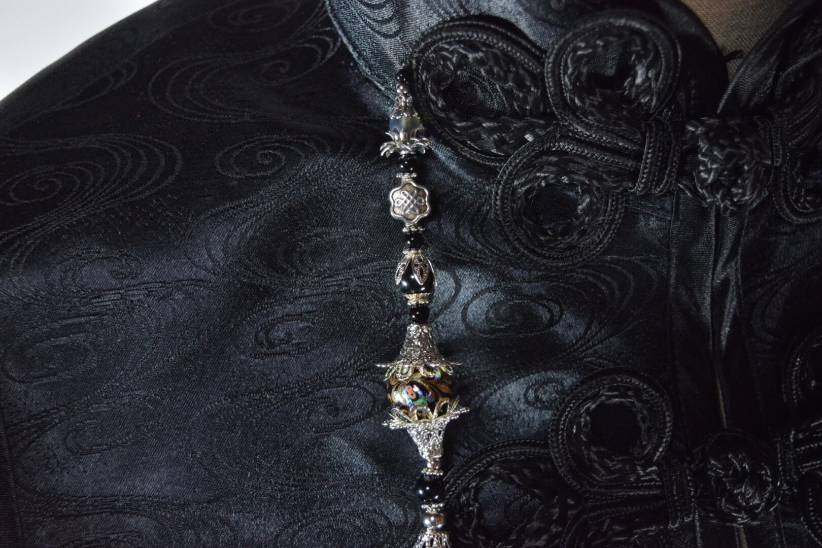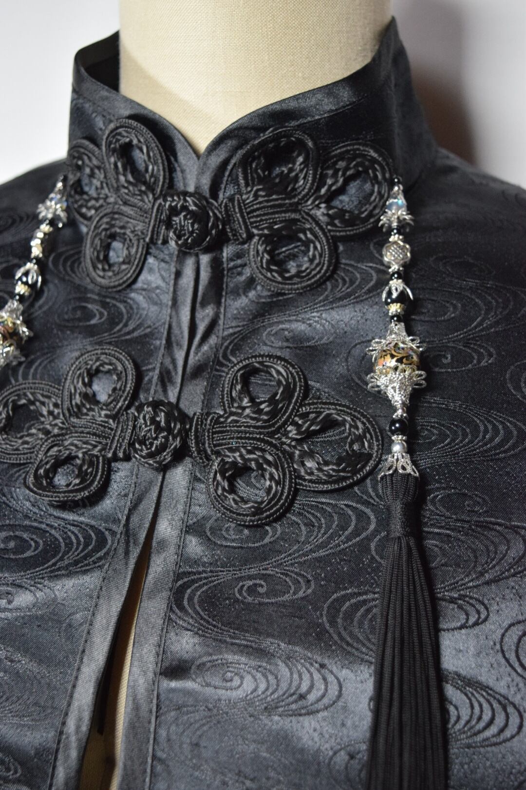 前装飾:黒、偏光ビーズ、吉祥紋、などに銀の装飾