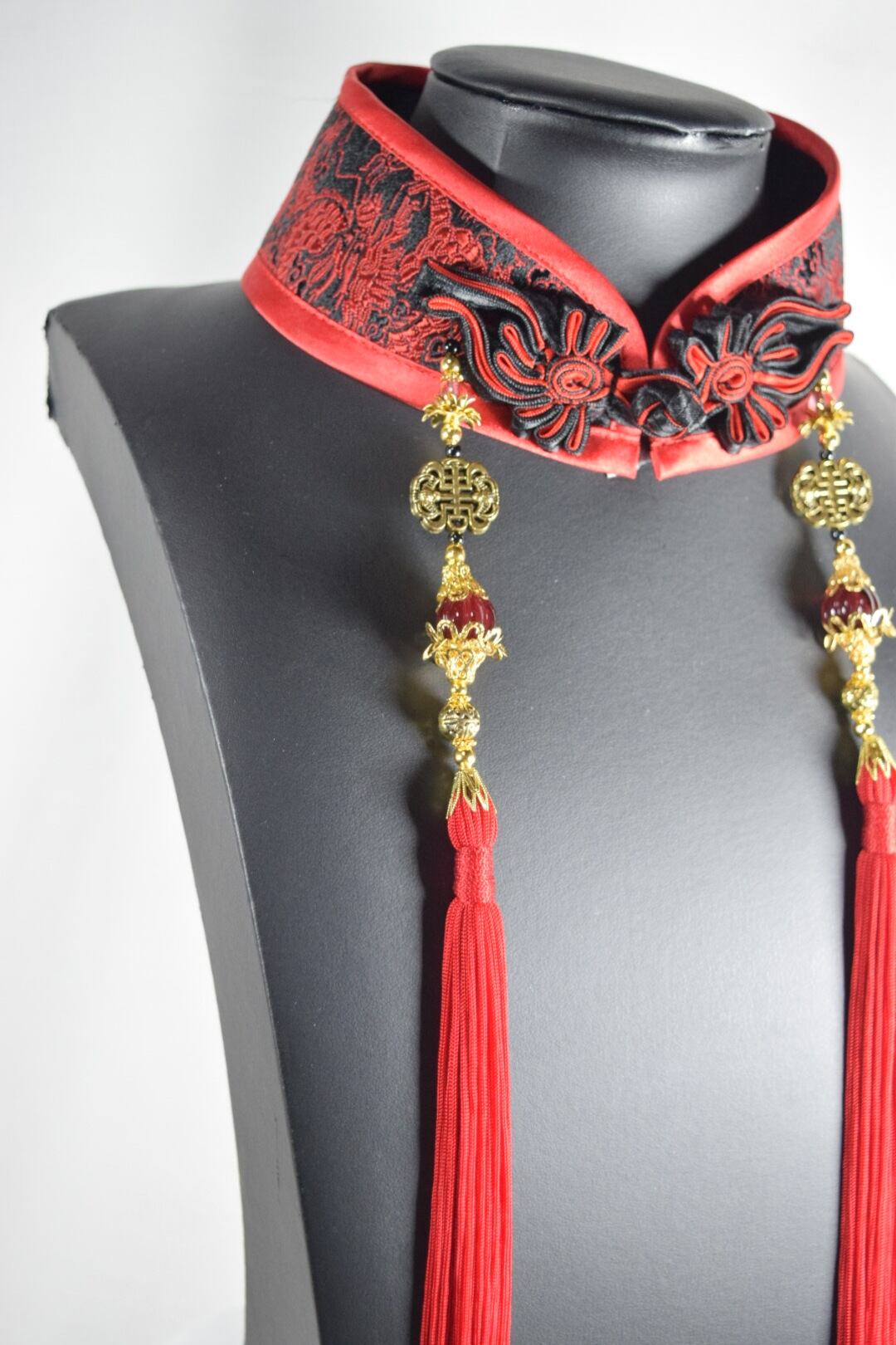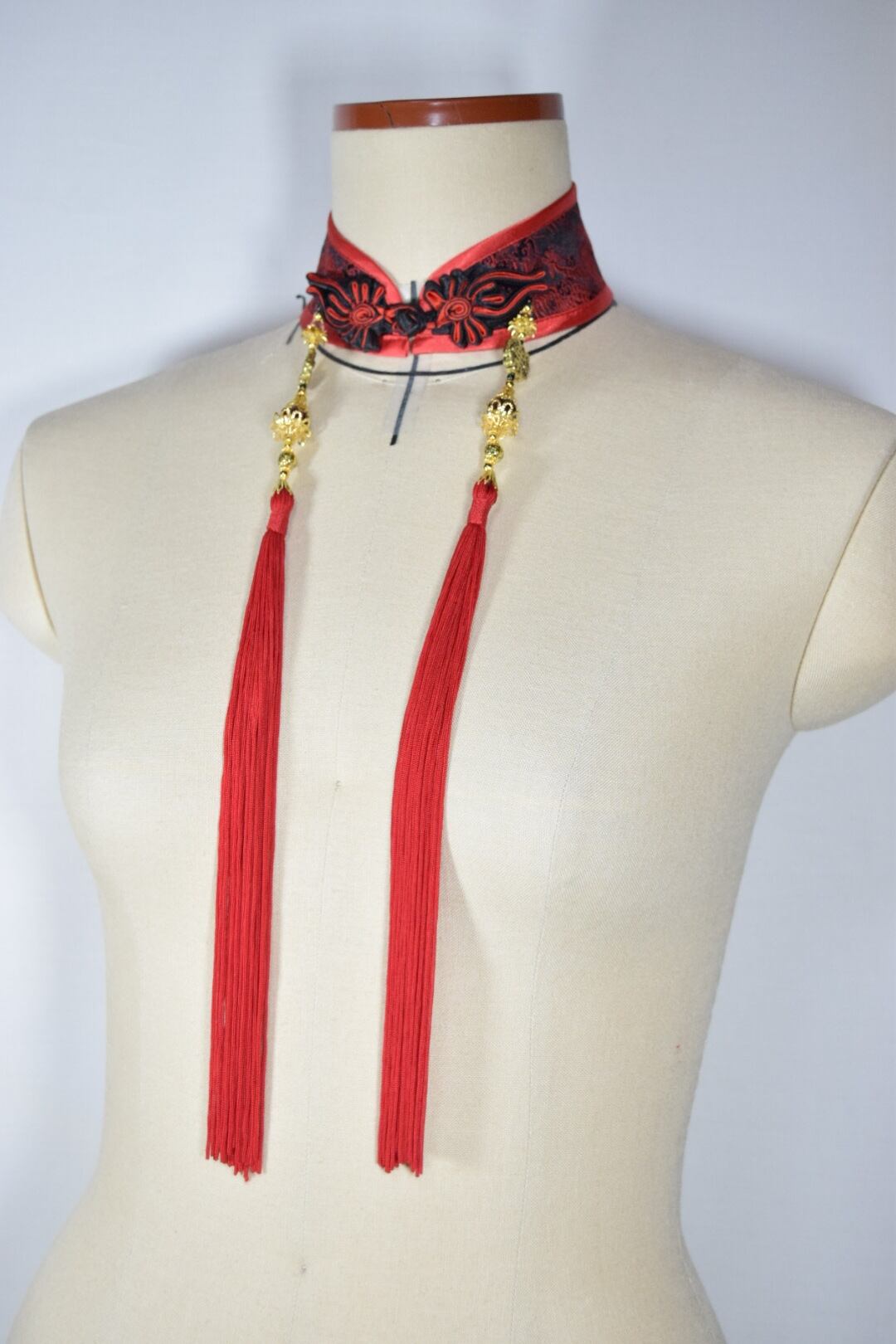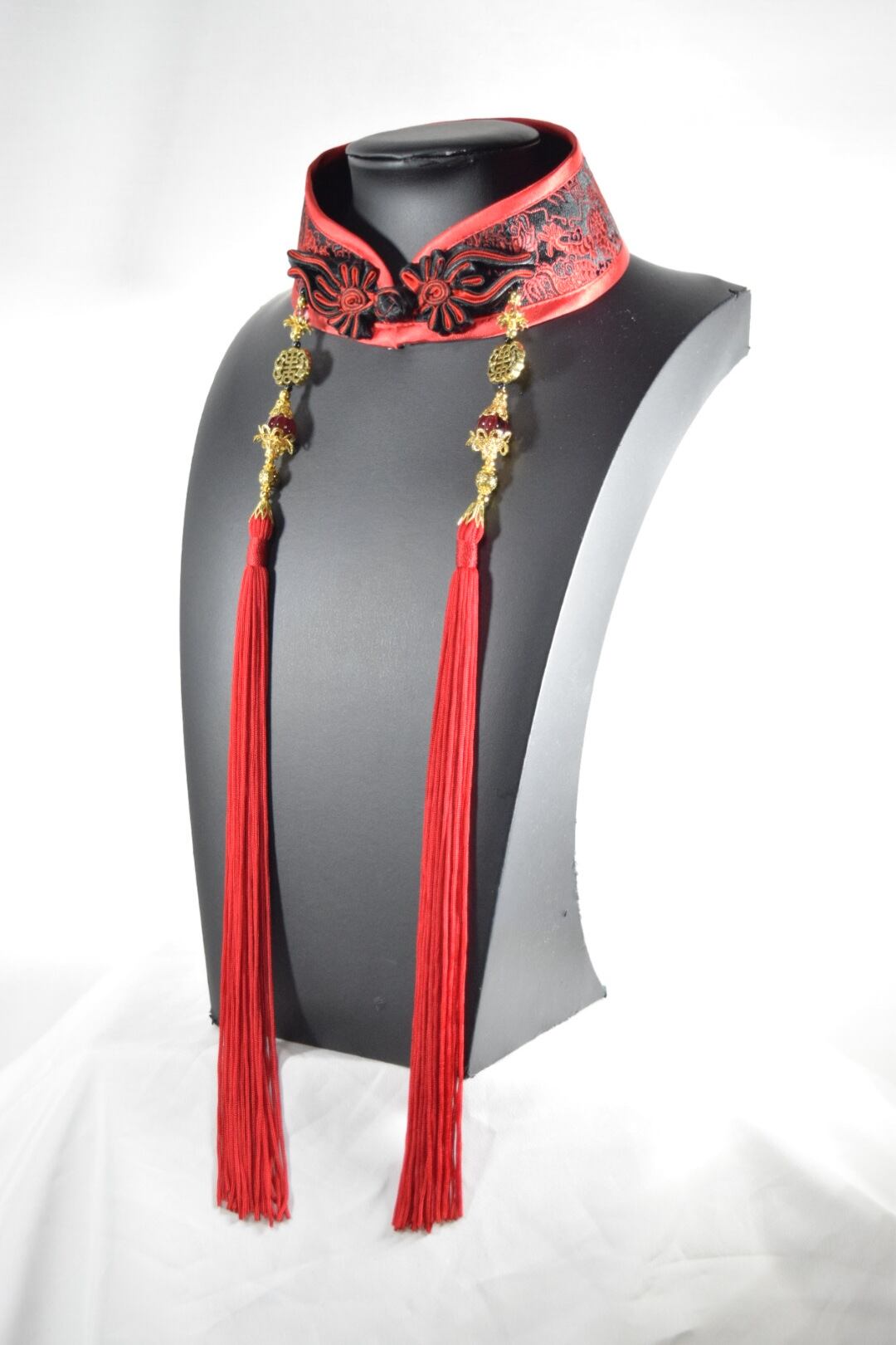 中華襟チョーカー(赤龍紋)Sサイズ[AR-SC134]