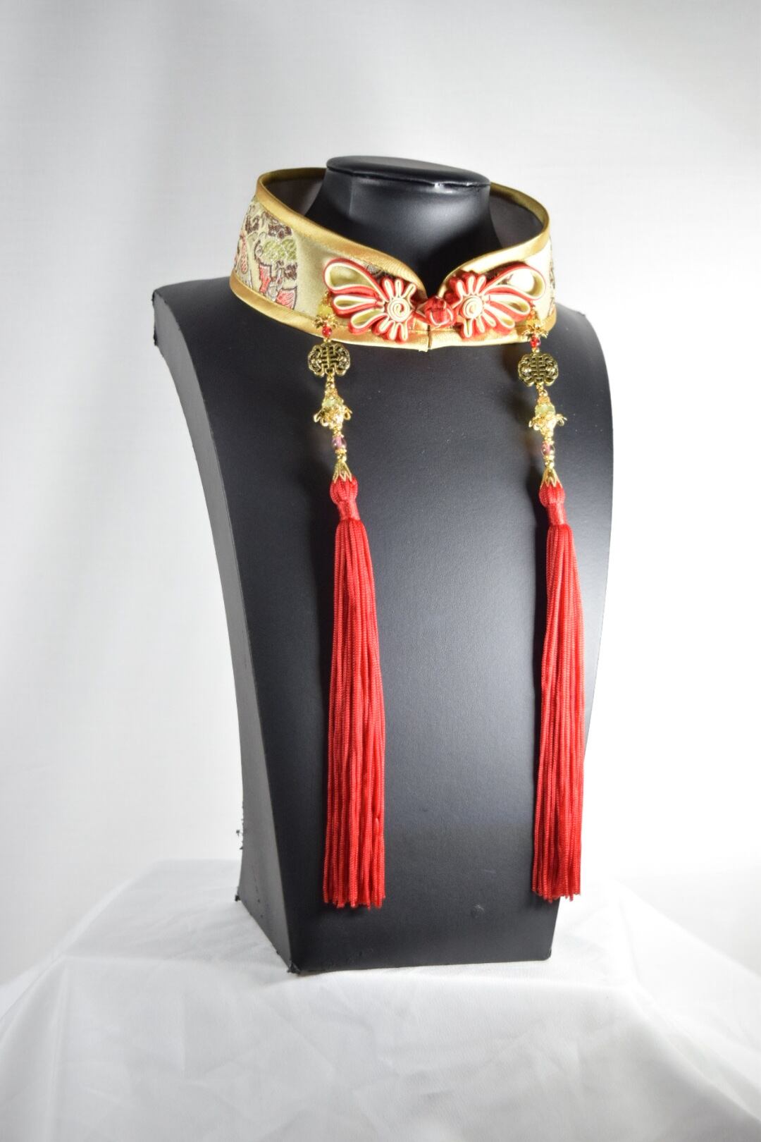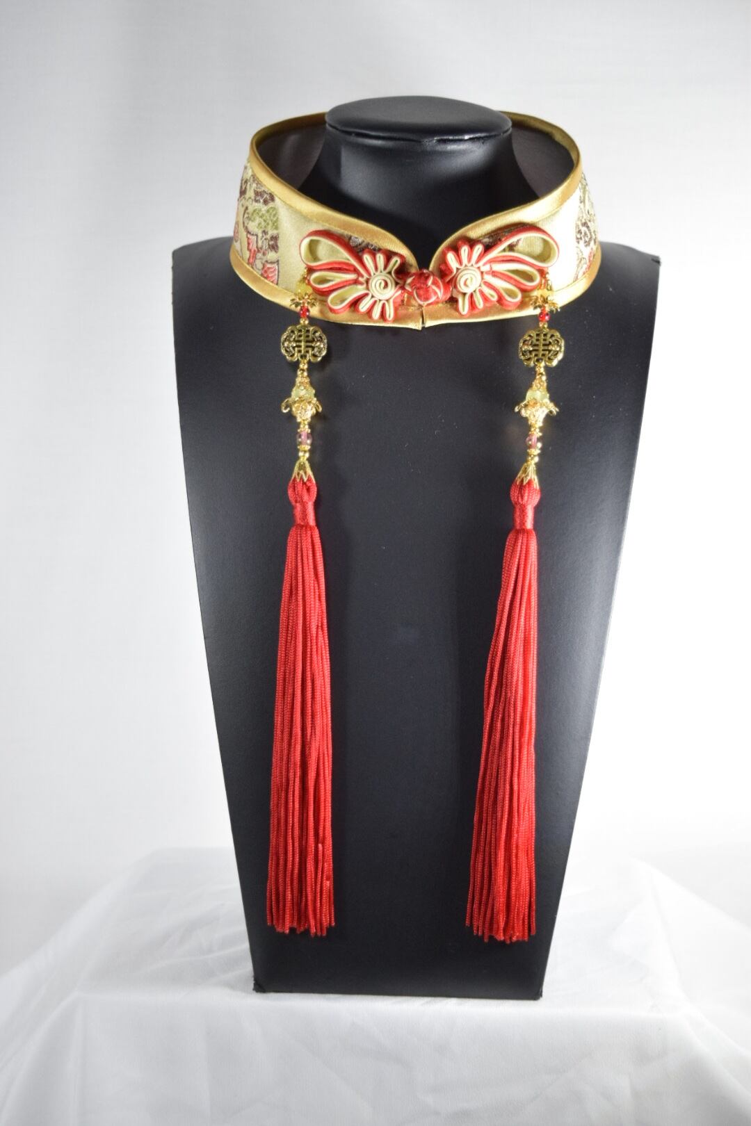 中華襟チョーカー(黄円紋紋)Mサイズ[AR-SC137]