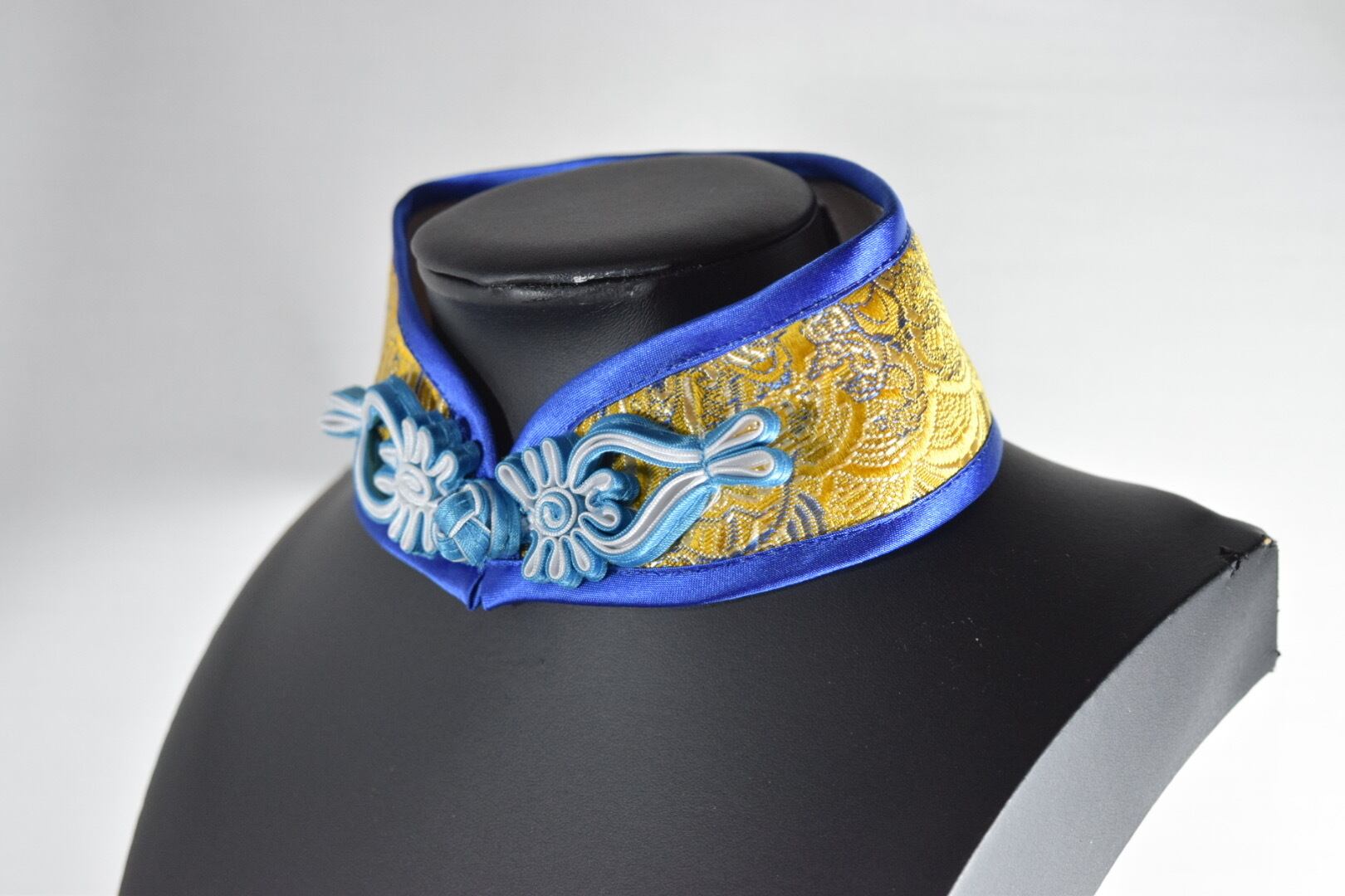 中華襟チョーカー(黄青)Sサイズ[AR-SC140]