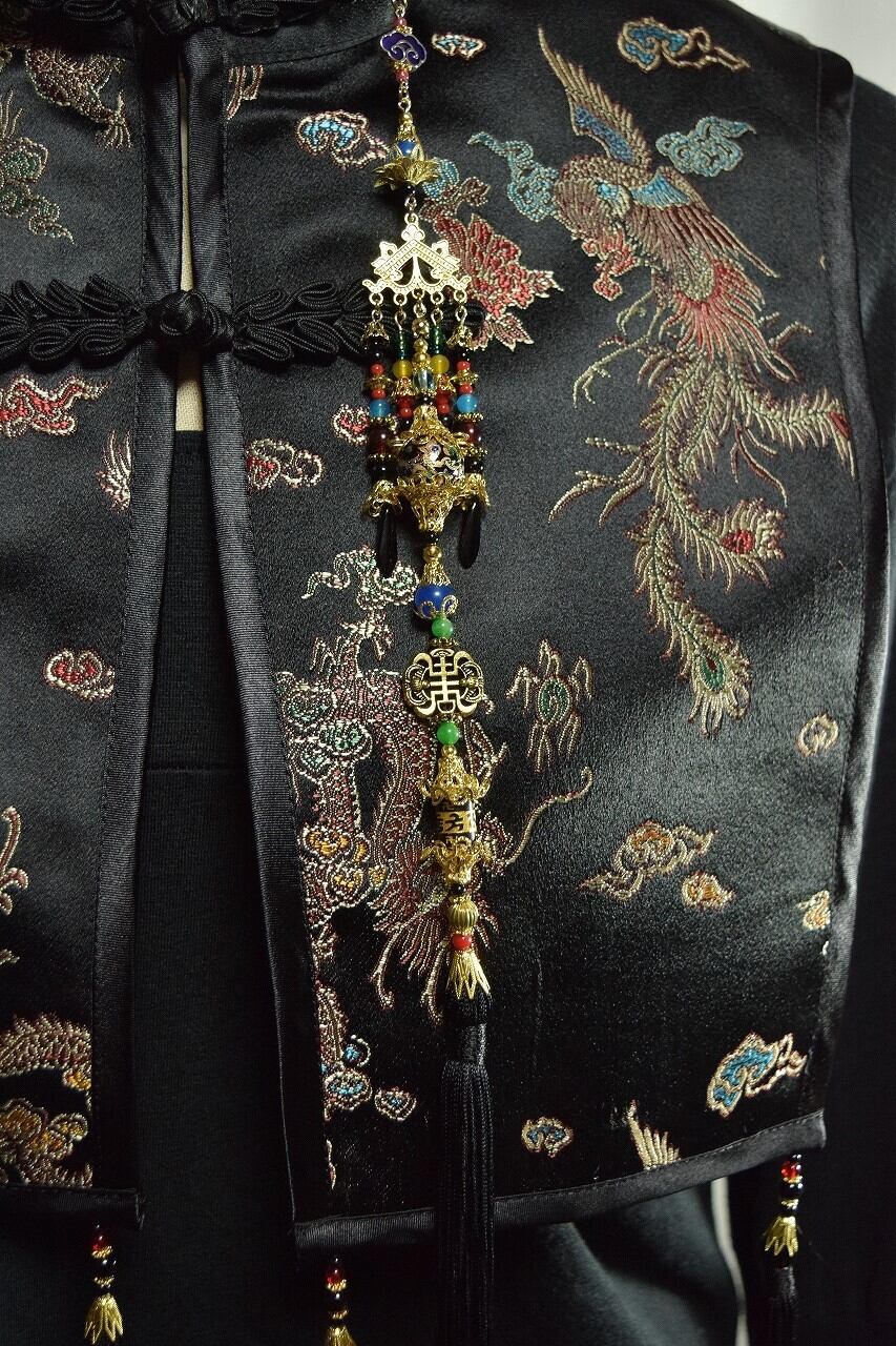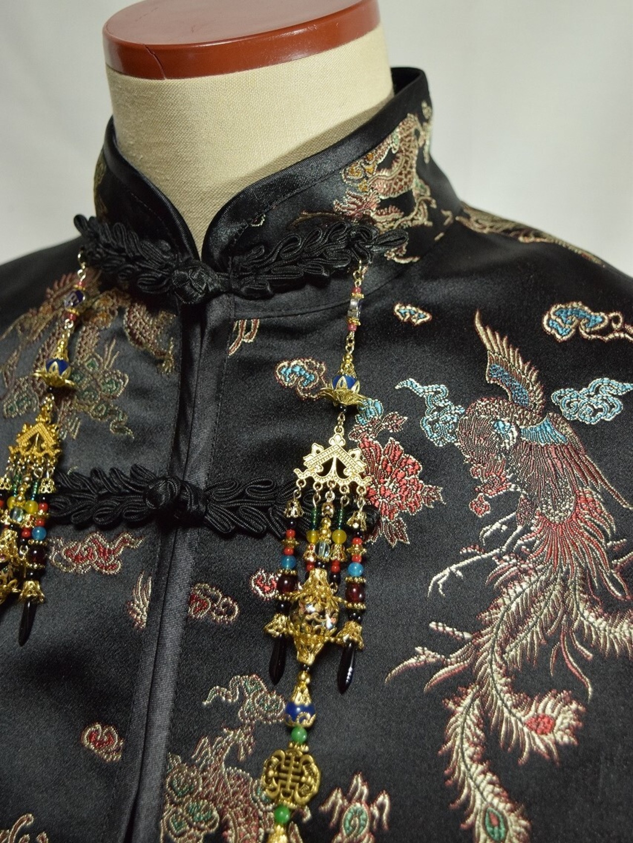 生地:黒地に龍と鳳凰柄のチャイナ生地