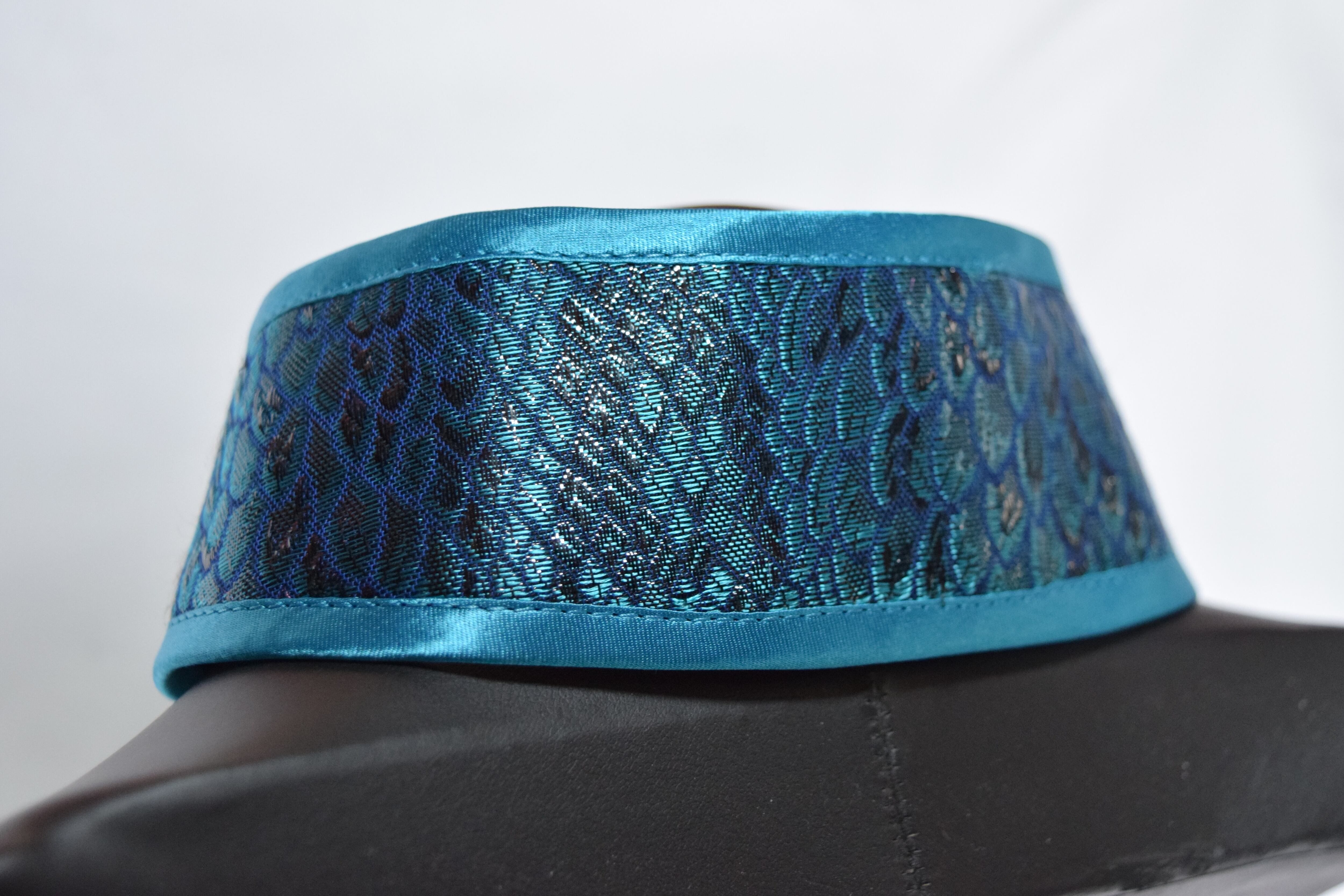 生地:光沢のある水色と黒の蛇柄