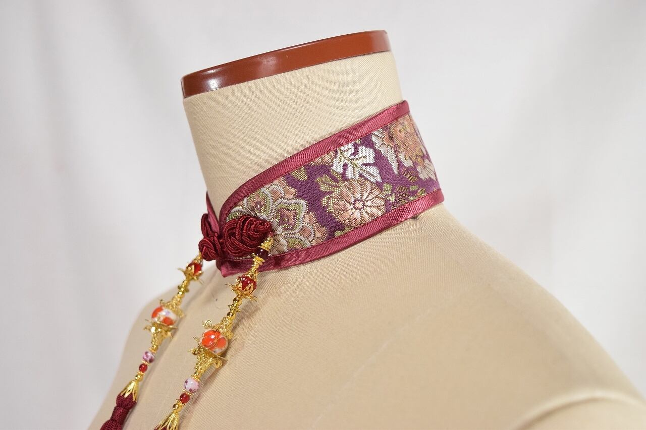 中華襟チョーカー(臙脂華) Sサイズ[AR-SC152]