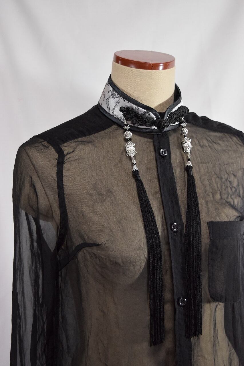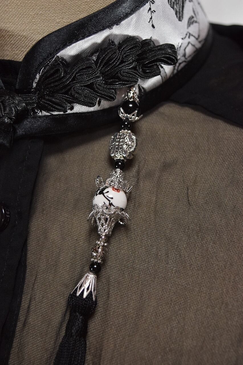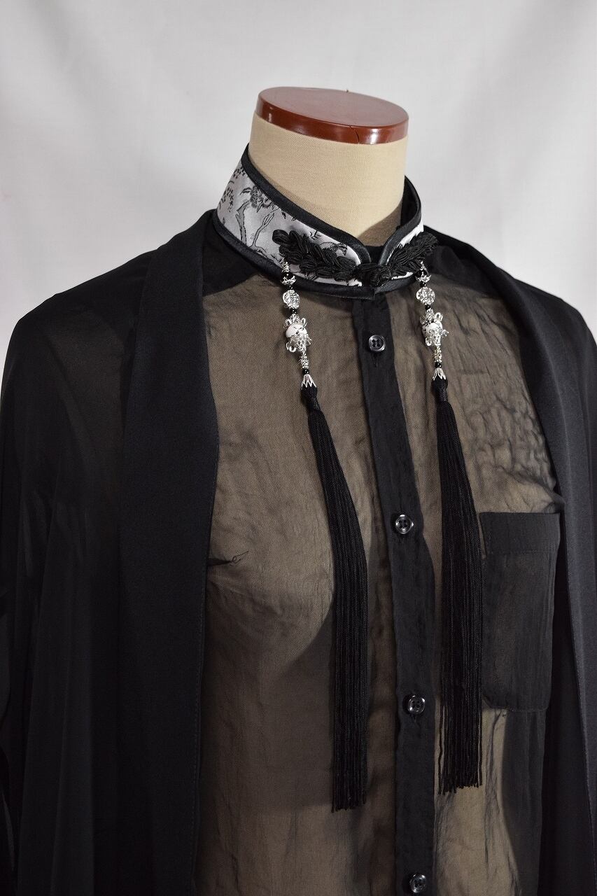 中華襟チョーカー(銀黒花)Mサイズ[AR-SC156]