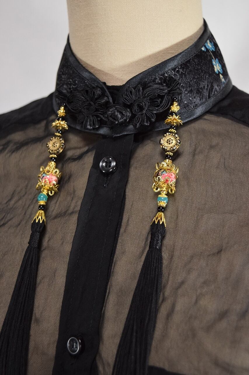 中華襟チョーカー(黒梅)Mサイズ[AR-SC158]