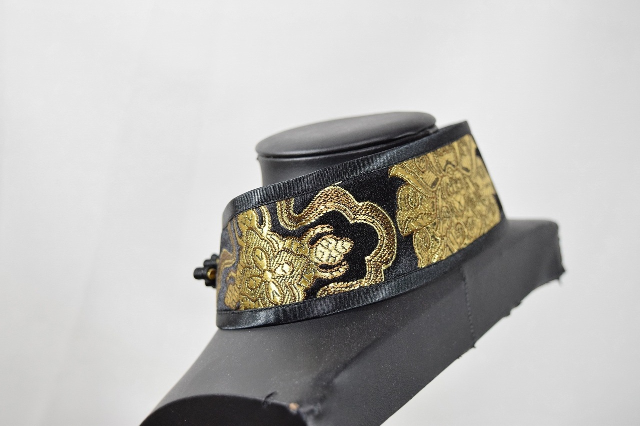 中華襟チョーカー(金×黒)Mサイズ[AR-SC160]