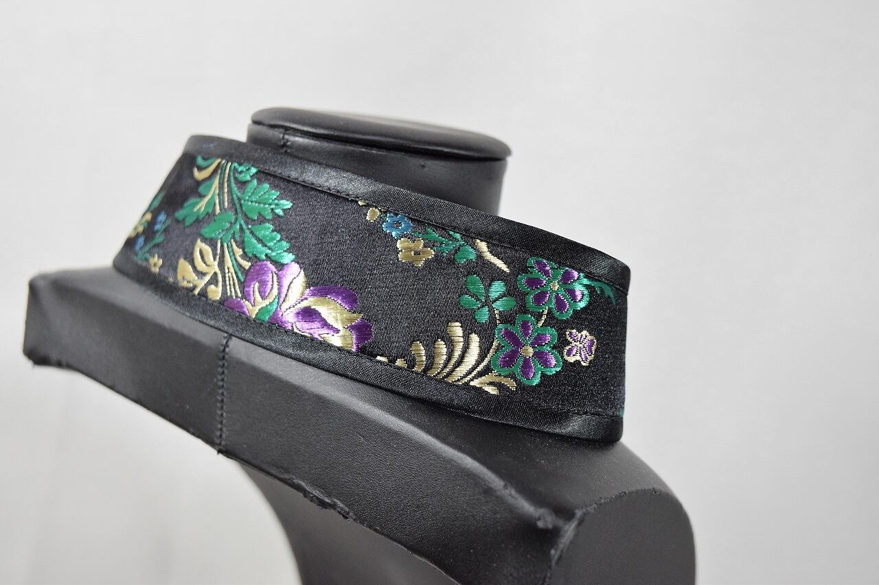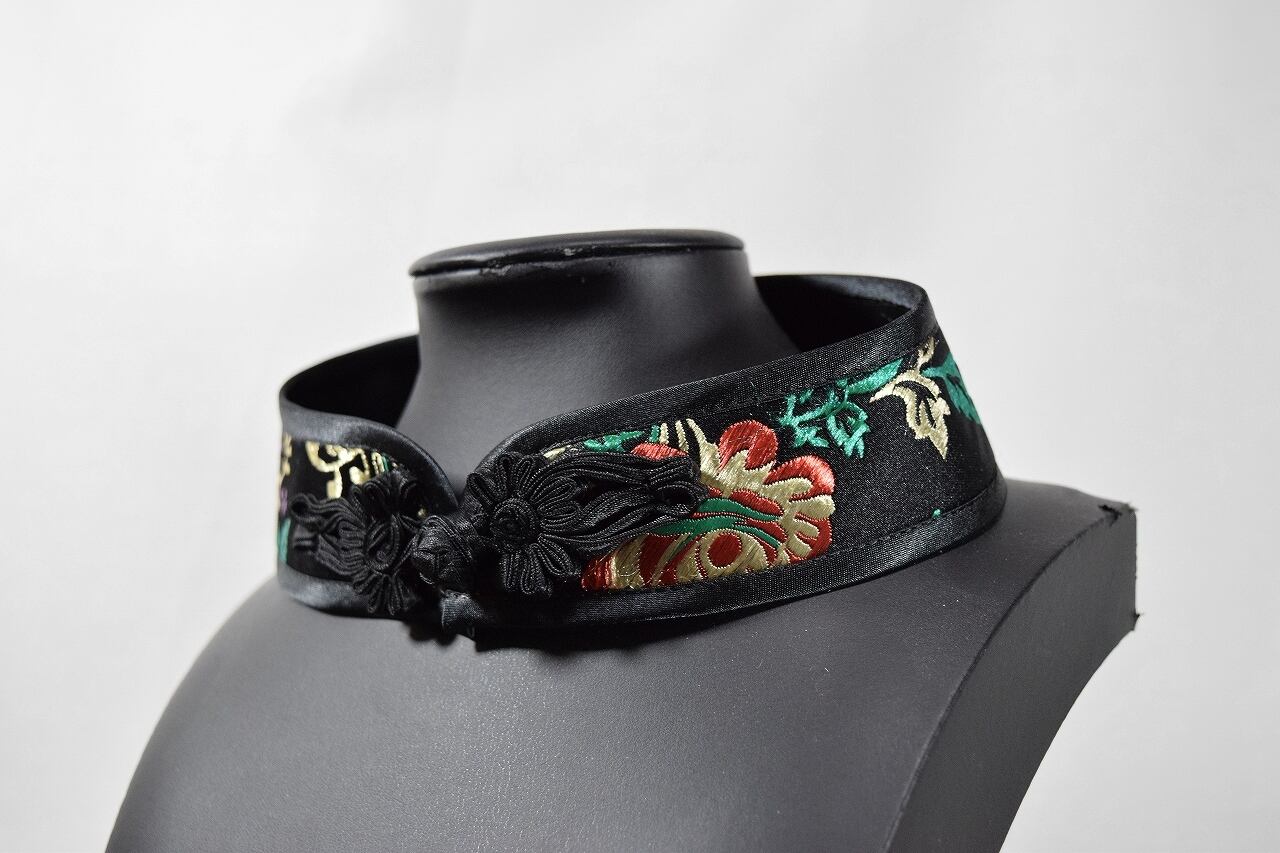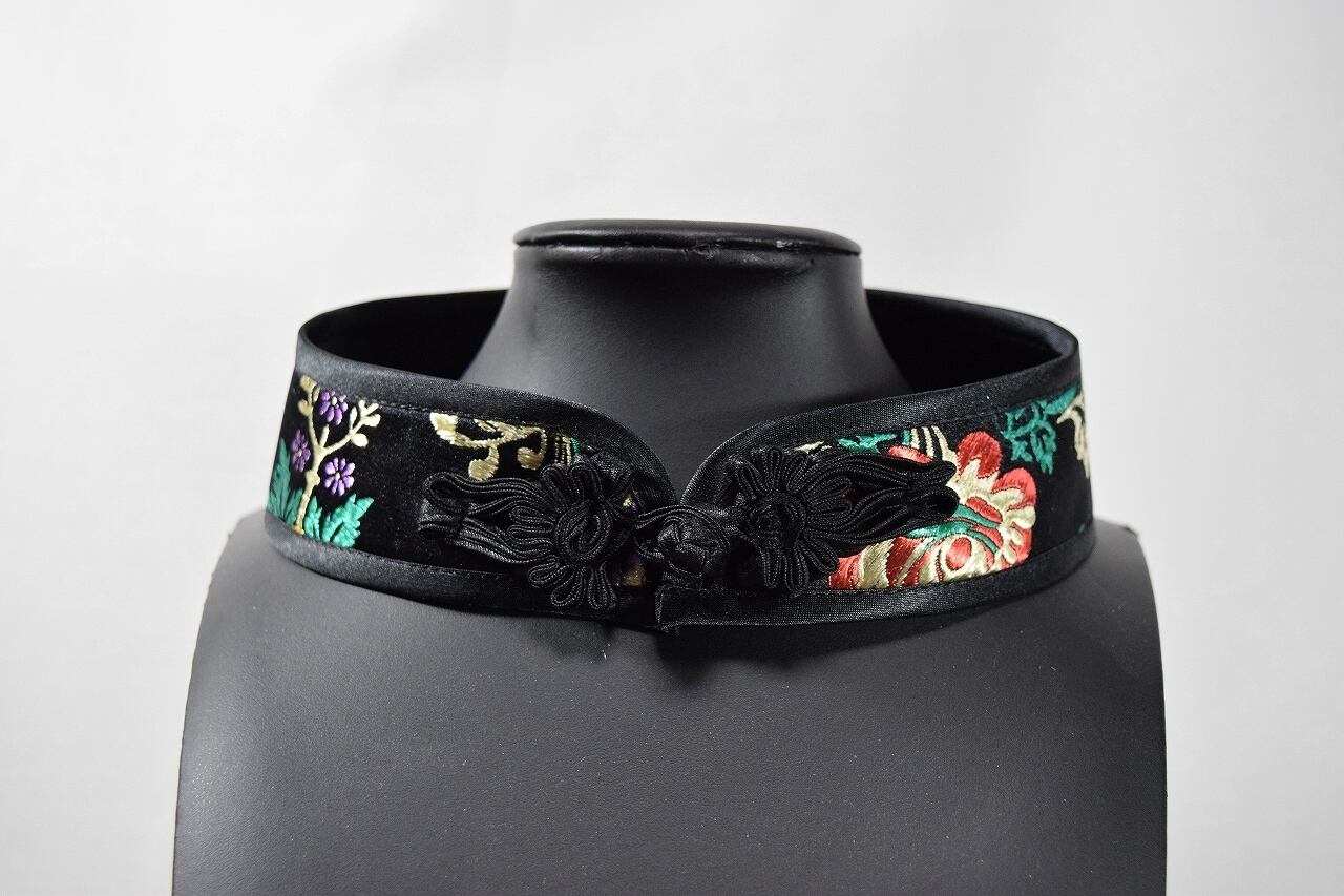 中華襟チョーカー(黒花)Lサイズ[AR-SC166]