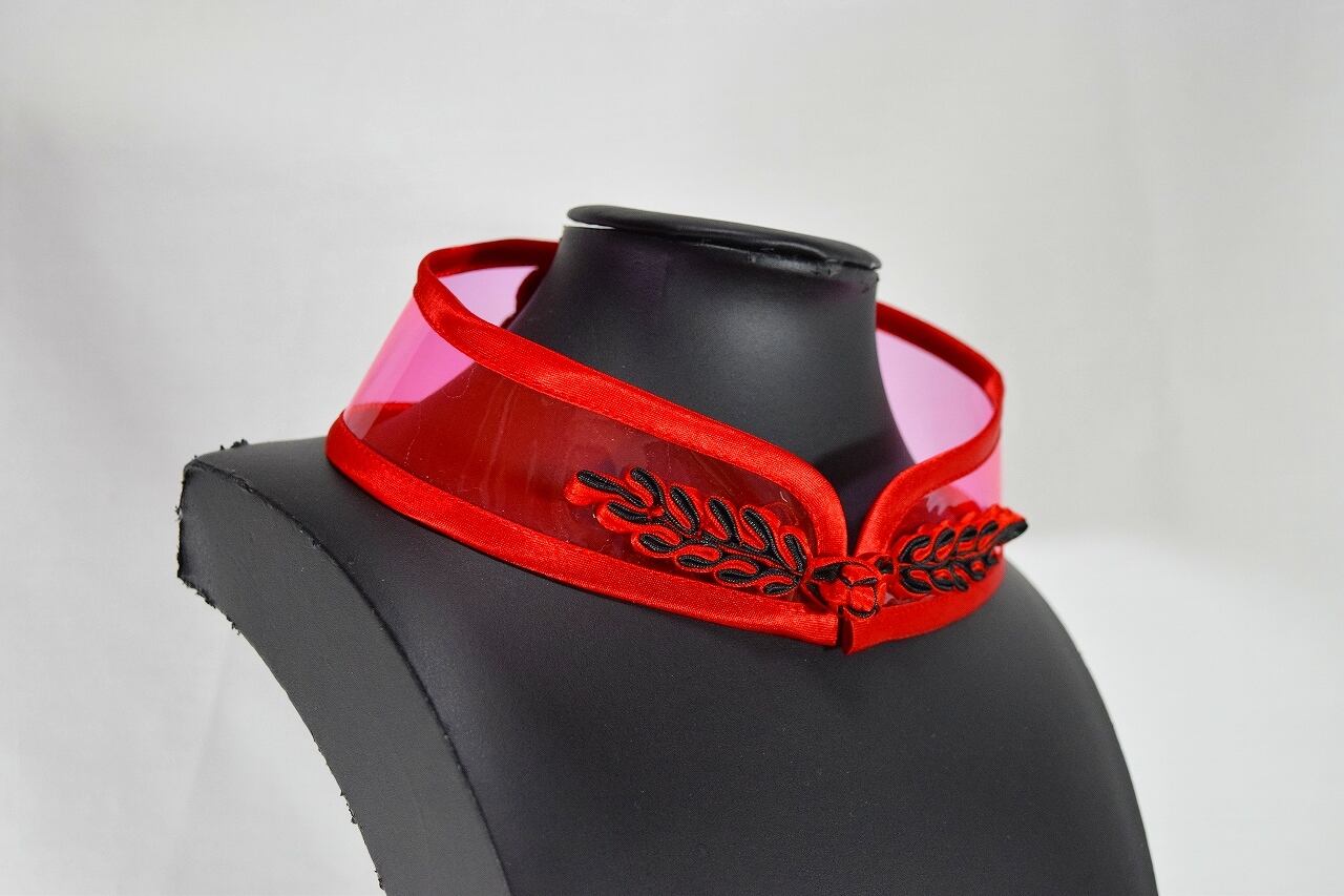 クリアビニールチャイナチョーカー(赤)Lサイズ[AR-CV006]