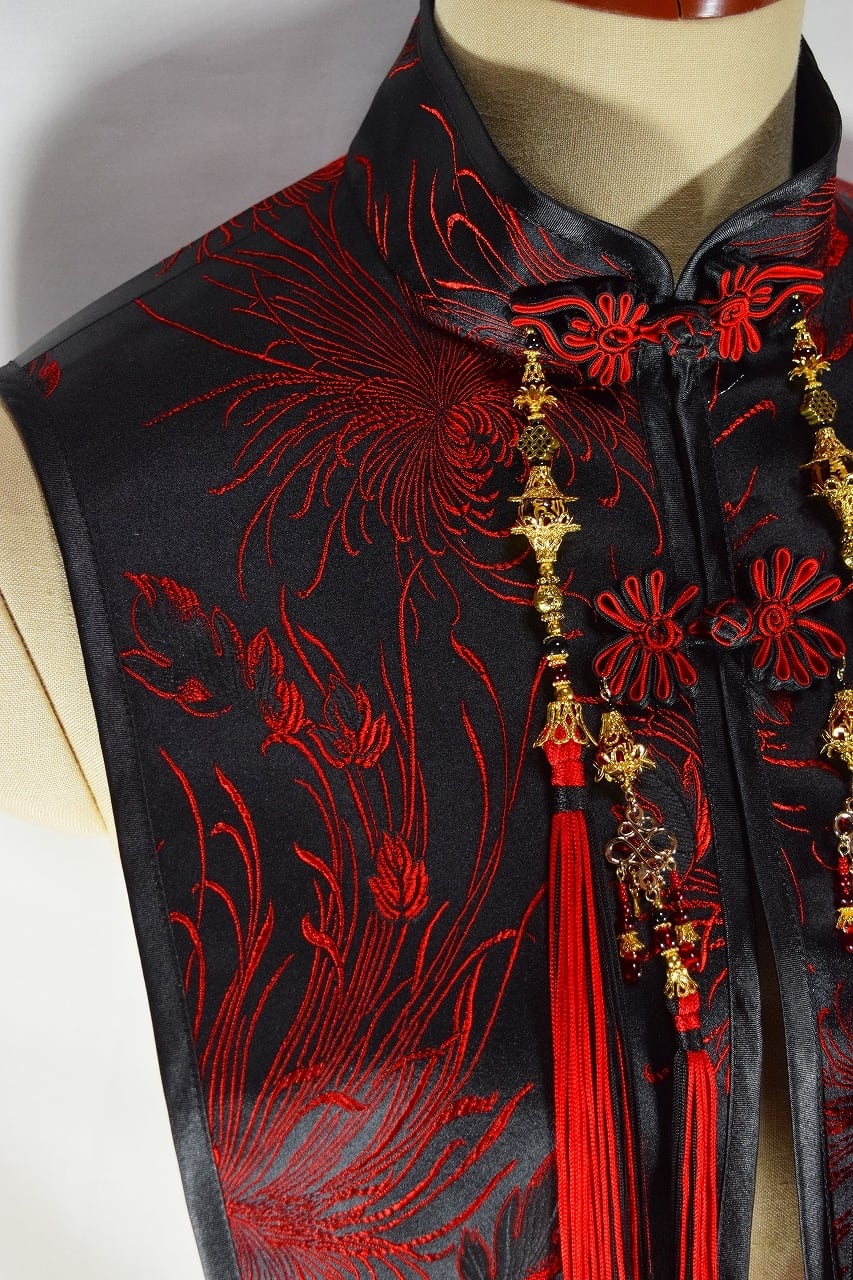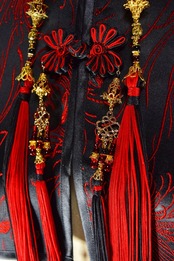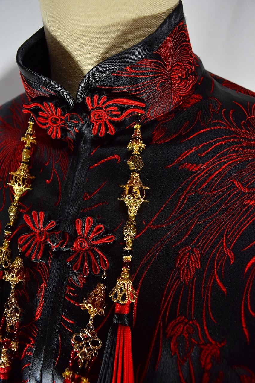 前は胸元まで裾があり、襟部分に着脱用のチャイナボタン