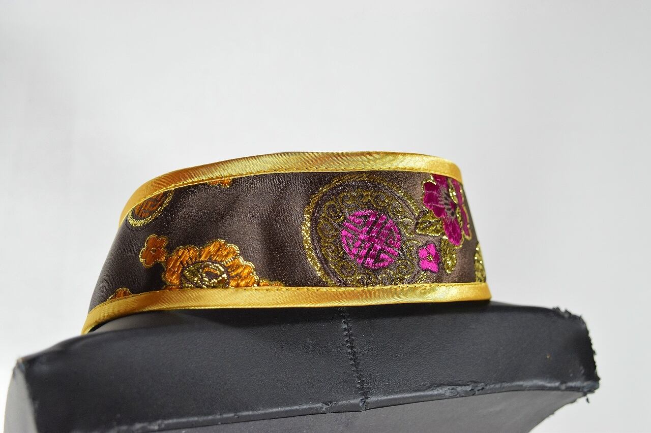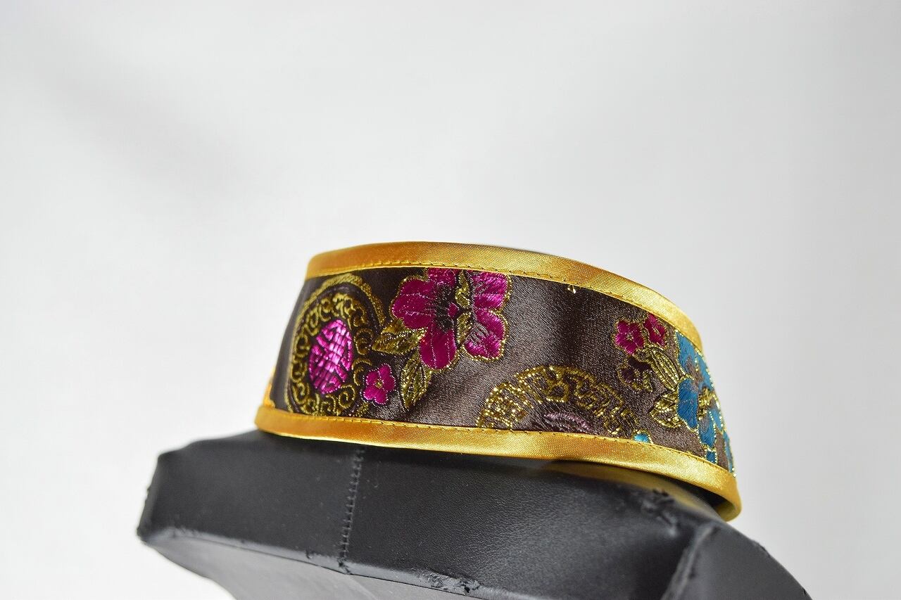 中華襟チョーカー(茶花紋)Mサイズ[AR-SC175]
