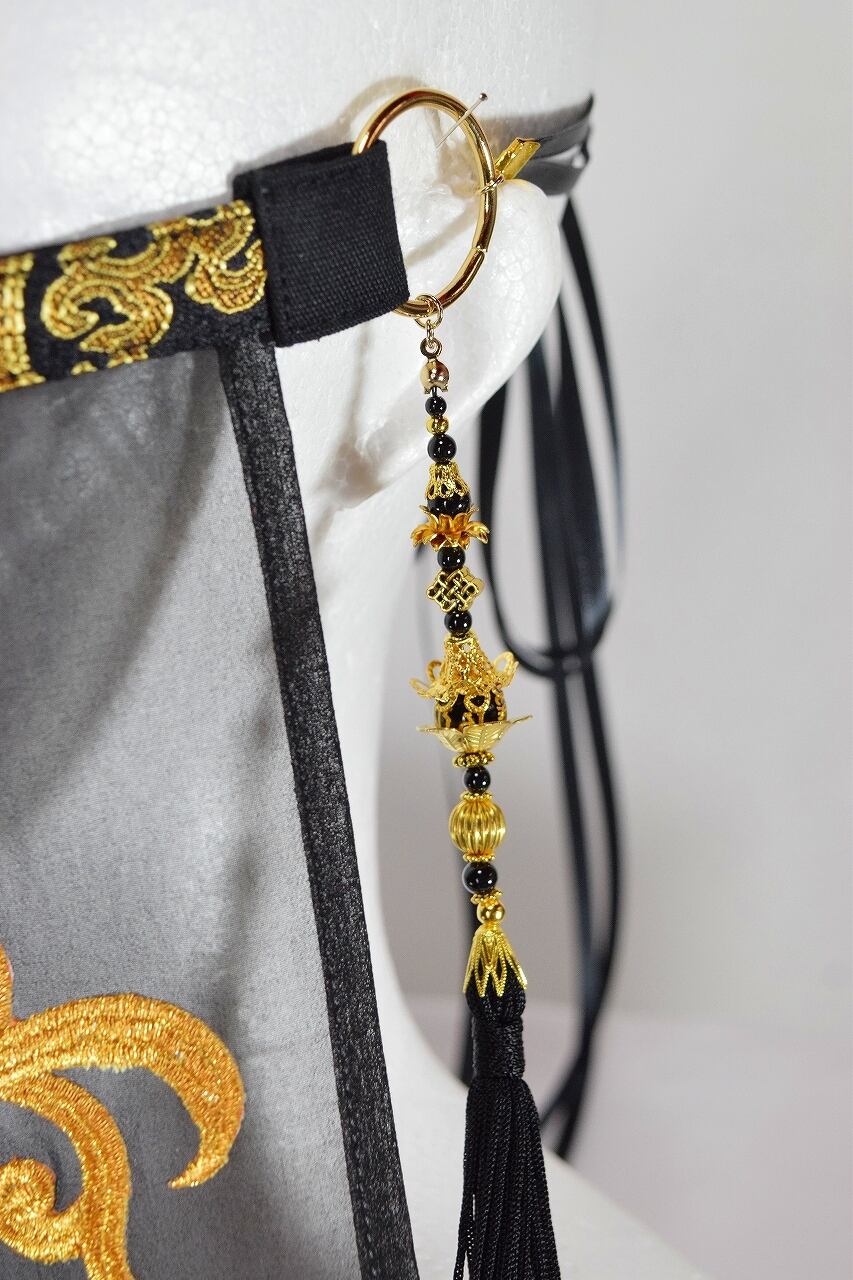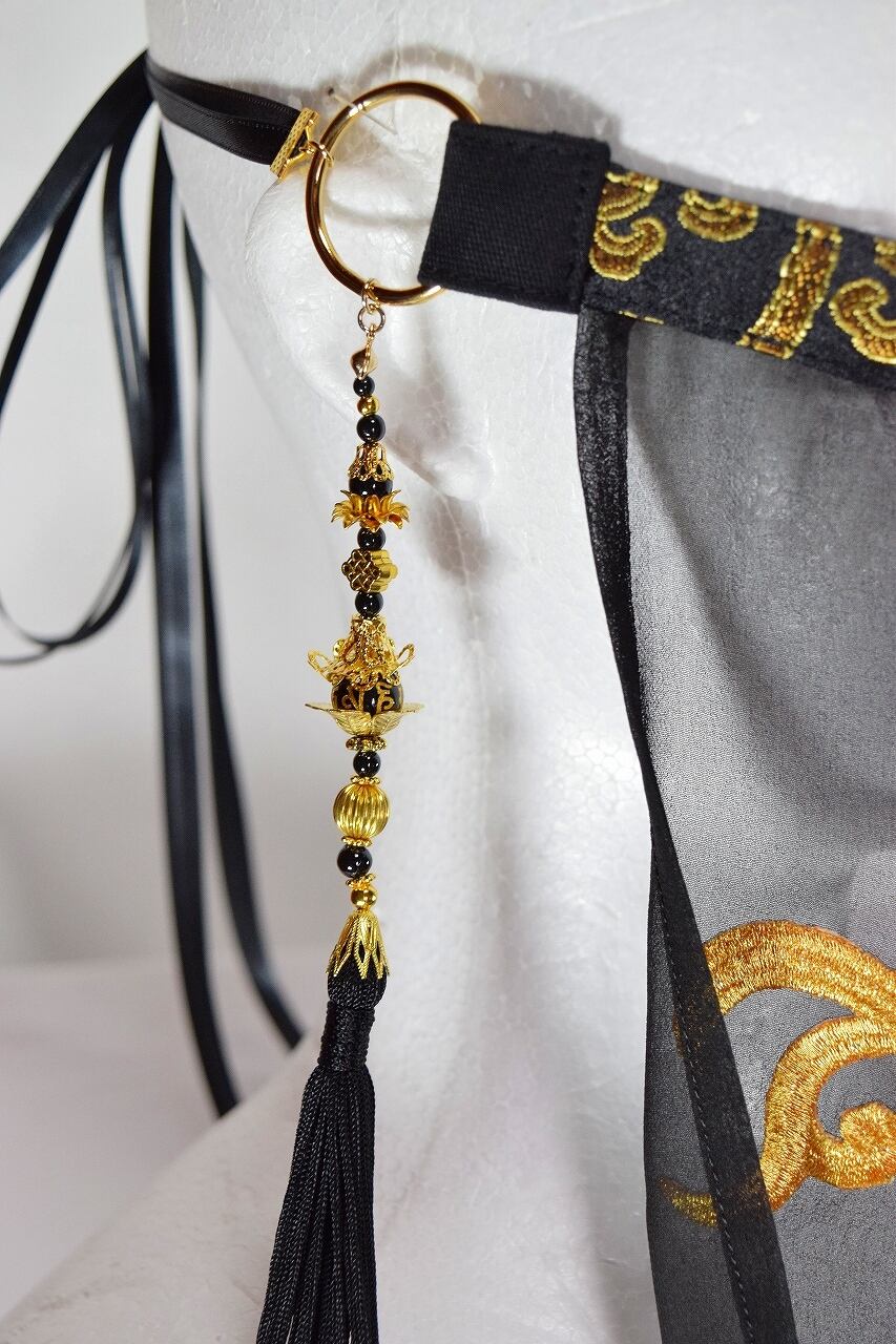 黒に金の梵字、金蓮のモチーフ、黒いタッセル