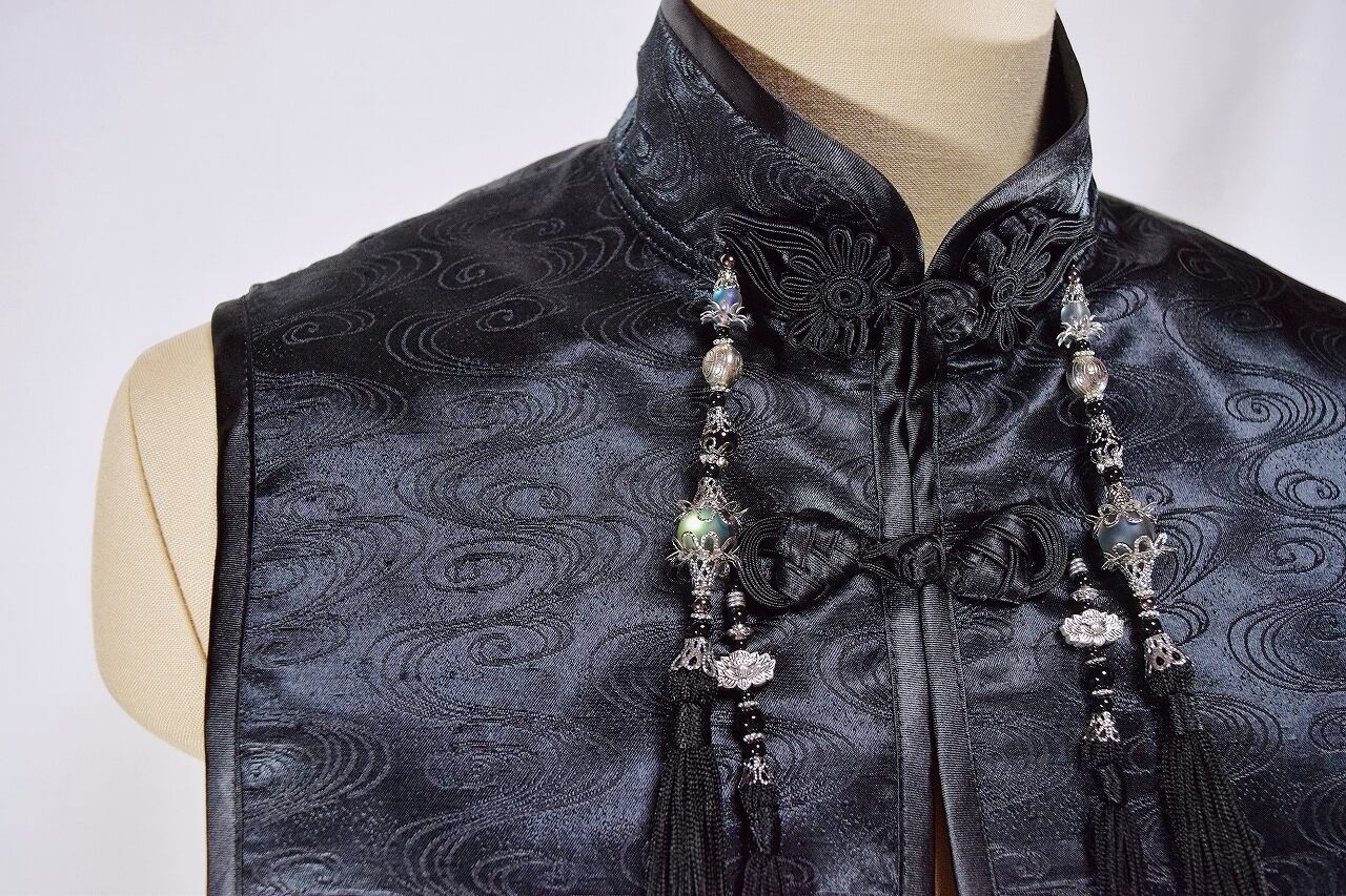 前装飾:黒、偏光ビーズ、紋様ビーズ、蓮モチーフなどに銀の装飾