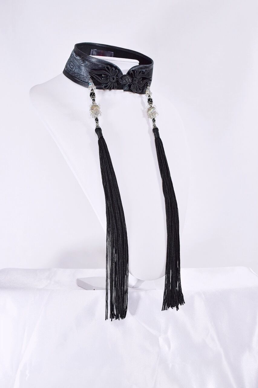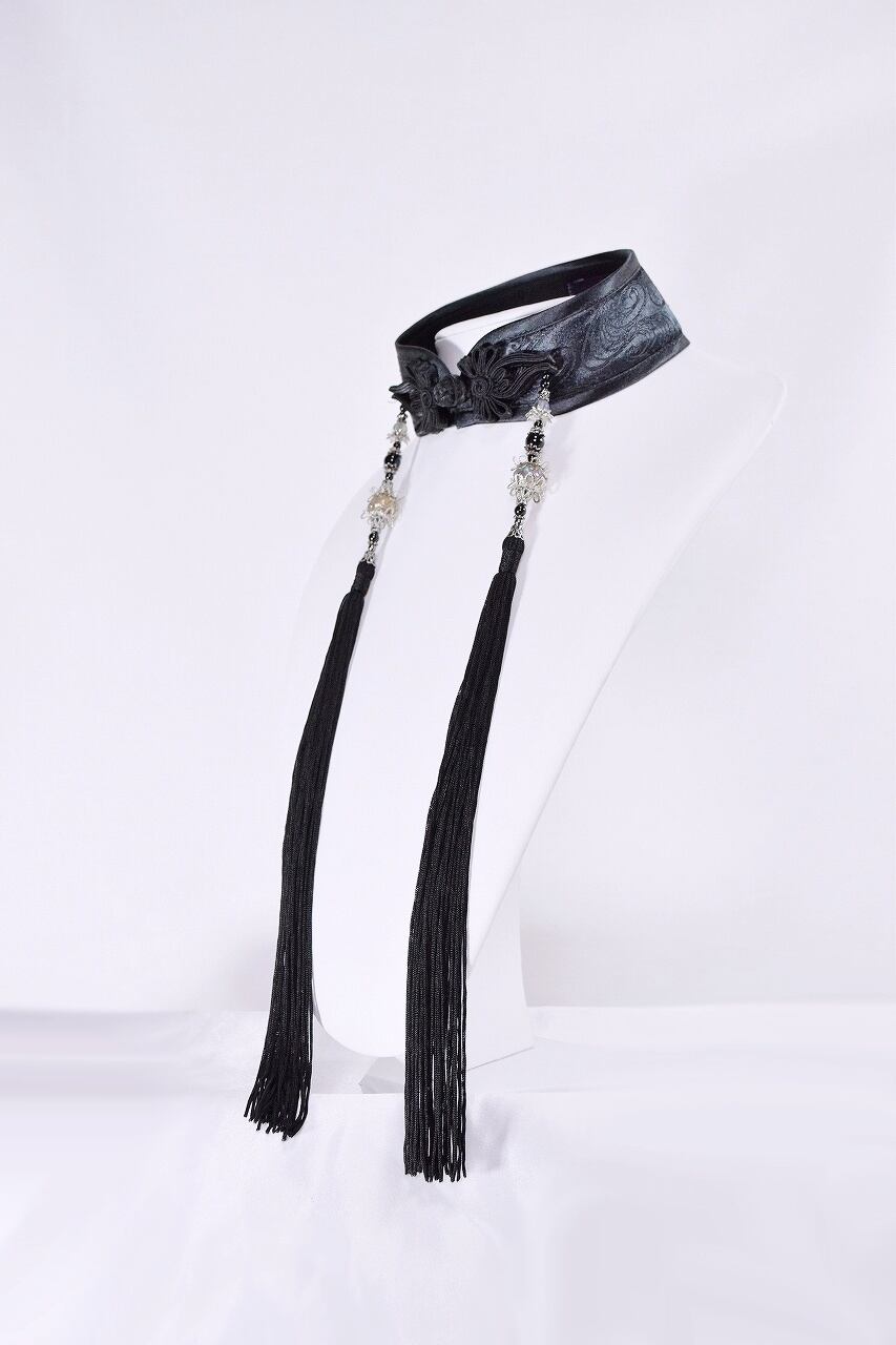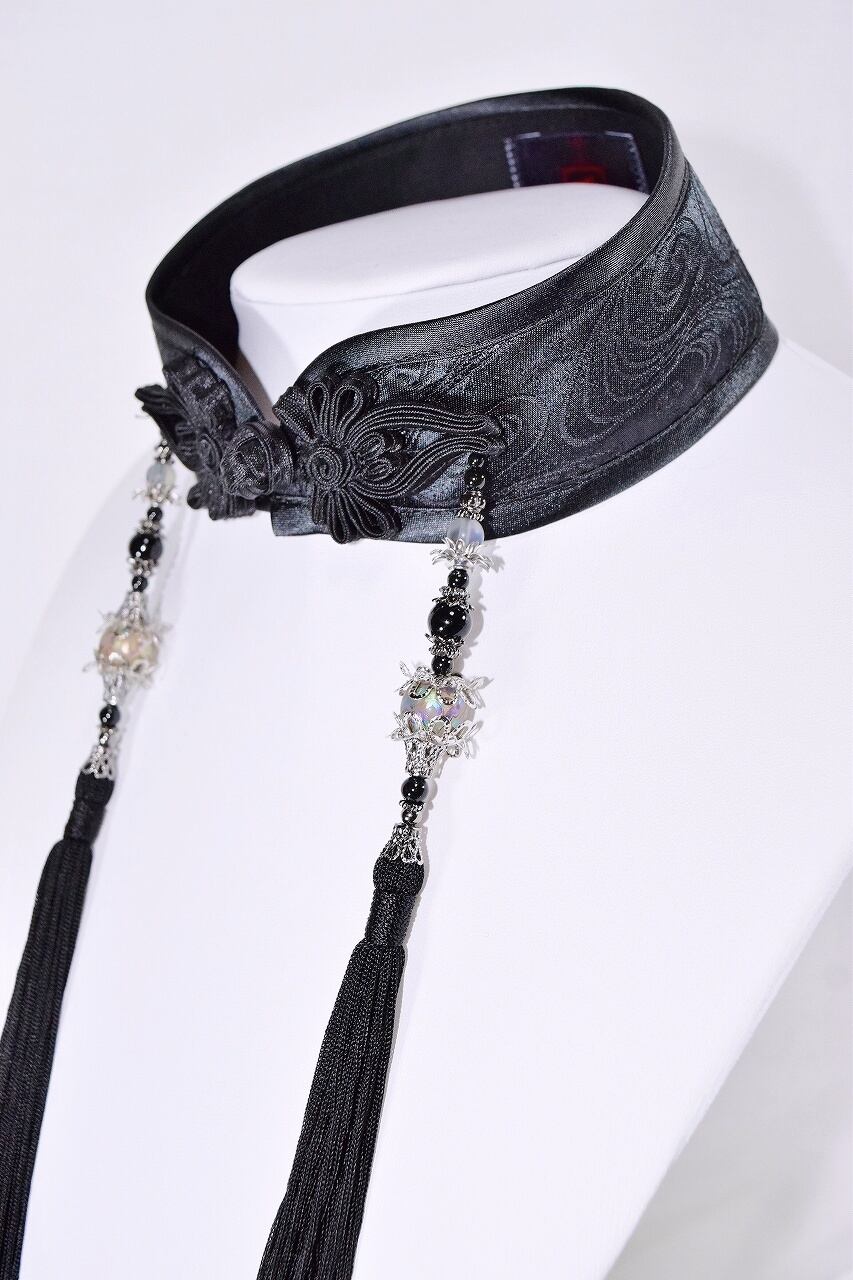 中華襟チョーカー(黒流水紋)Mサイズ[AR-SC185]