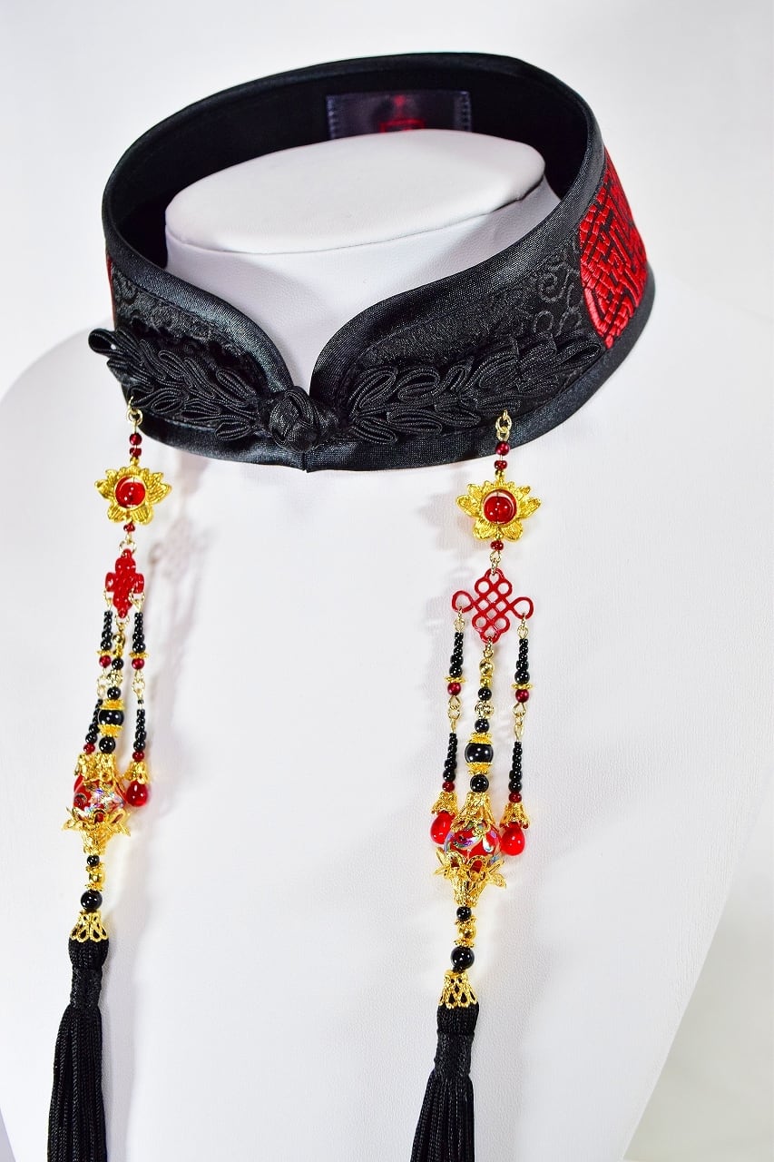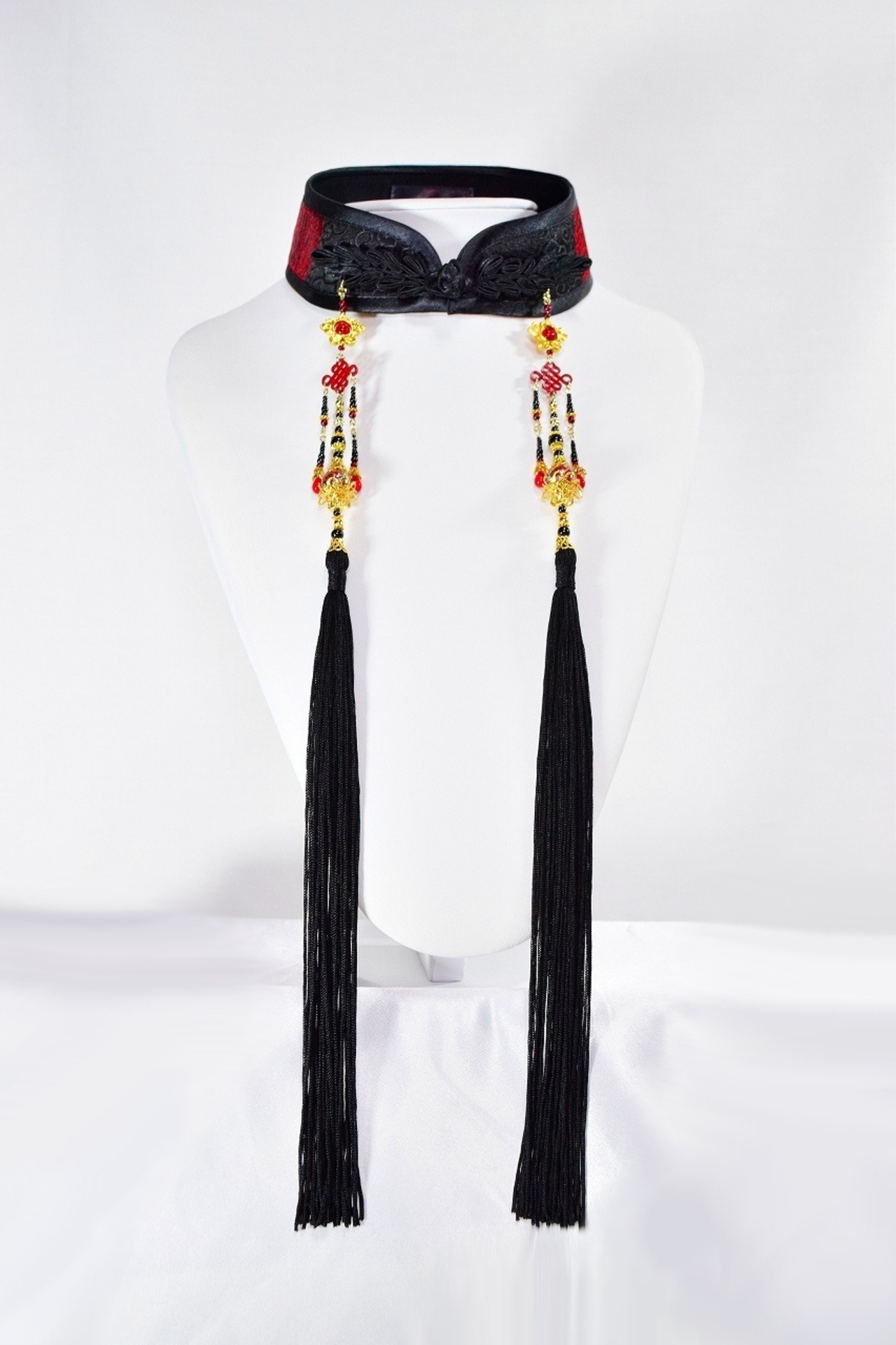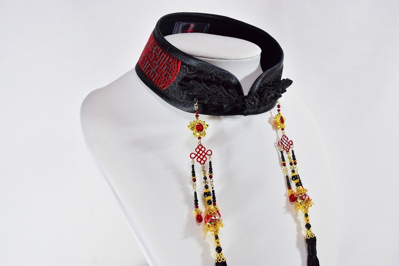 中華襟チョーカー(赤円紋黒)Mサイズ[AR-SC186]