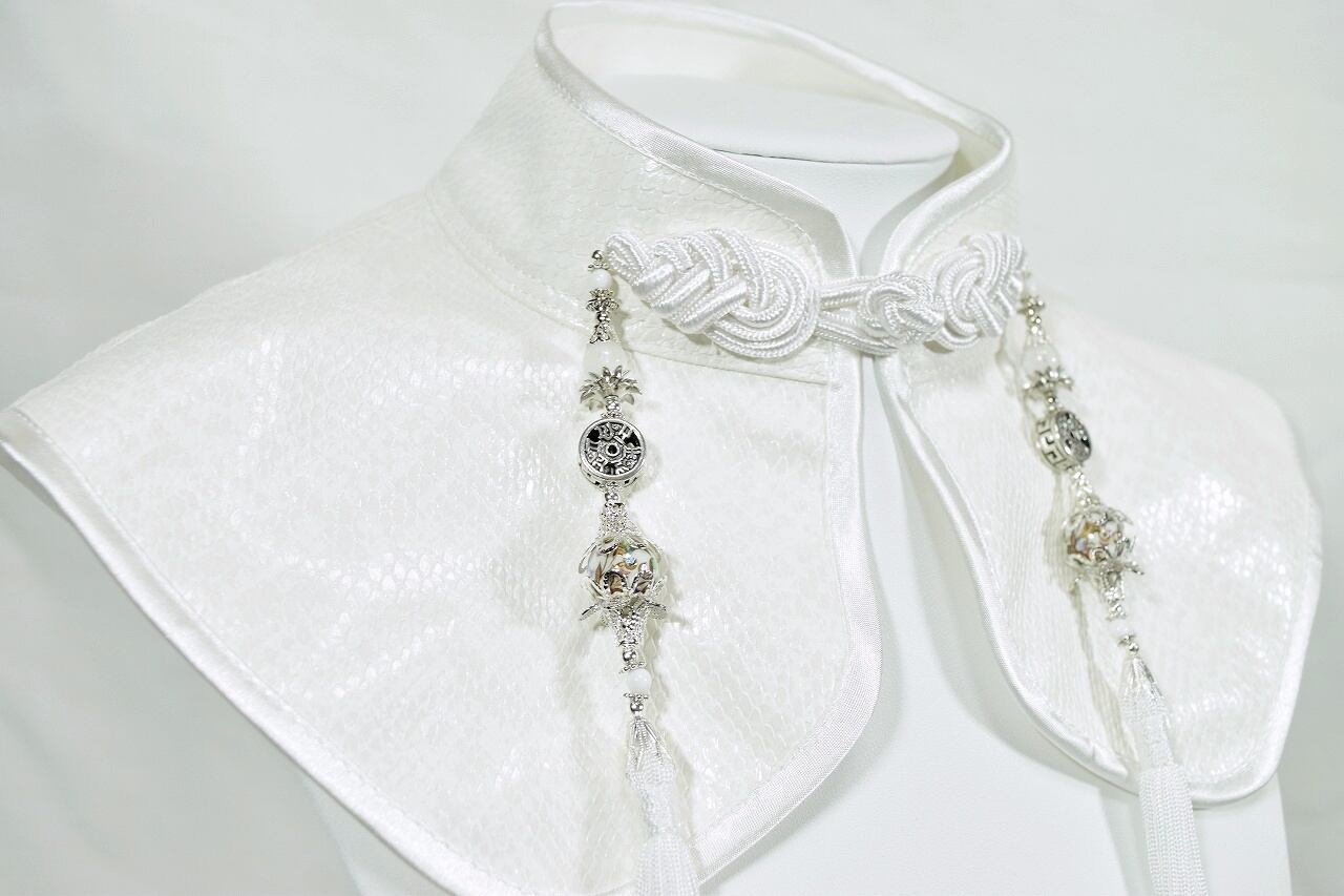 単体で服の上から、ジャケット、羽織の下などチャイナカラーを装いにプラスしたい際に使えるアイテムです