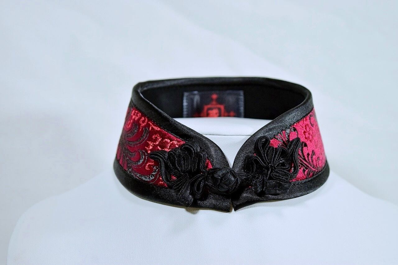 中華襟チョーカー(臙脂黒蔦)Sサイズ[AR-SC191]