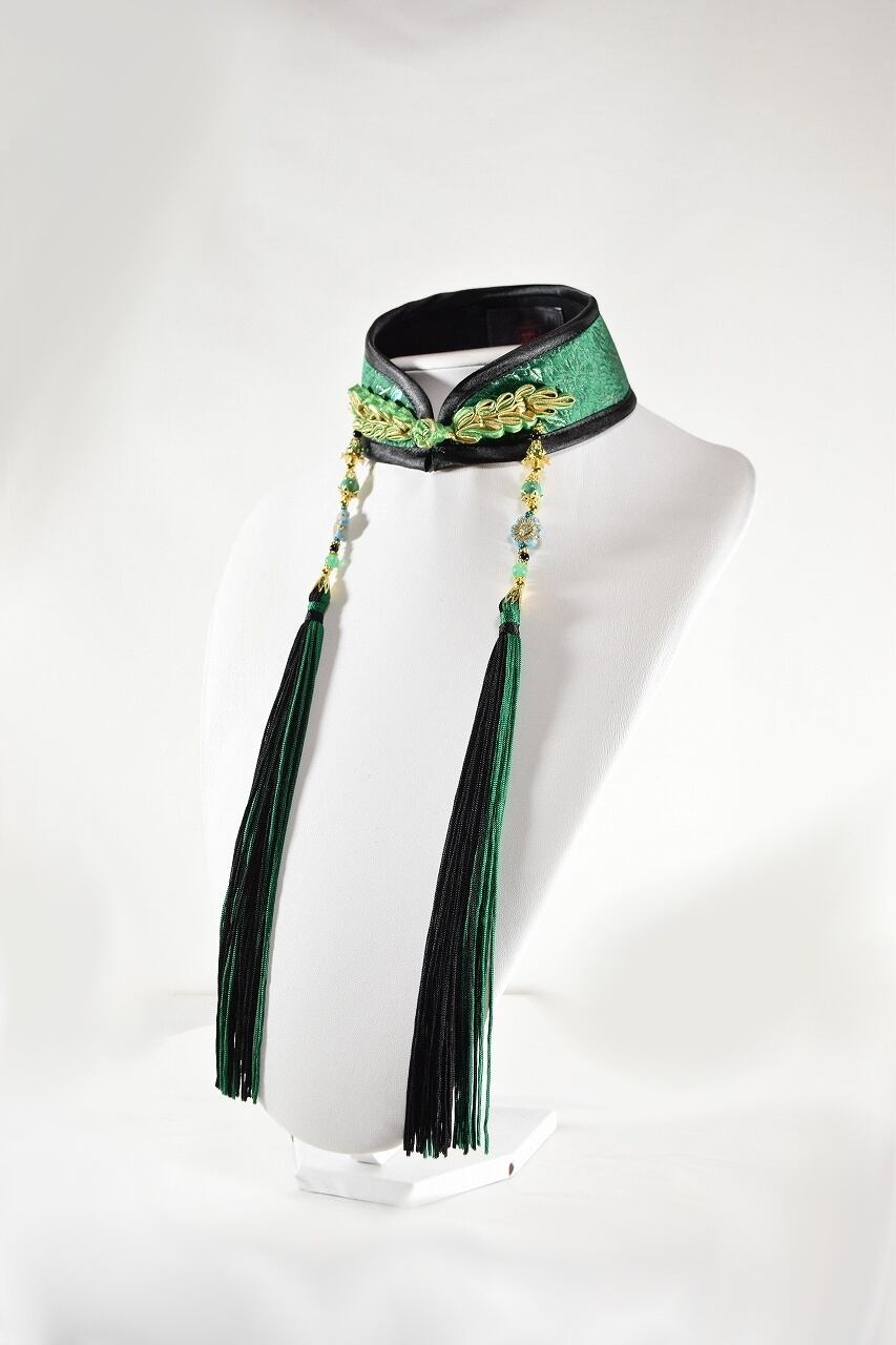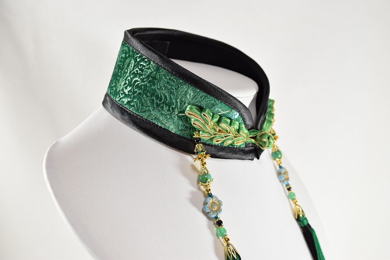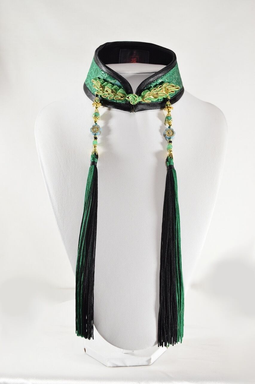 中華襟チョーカー(緑×黒)Sサイズ[AR-SC200]