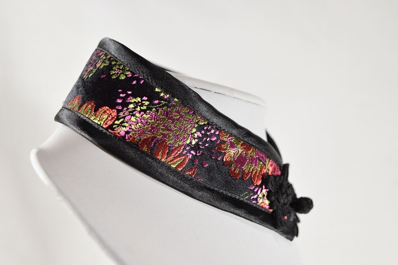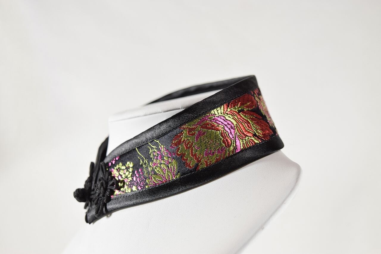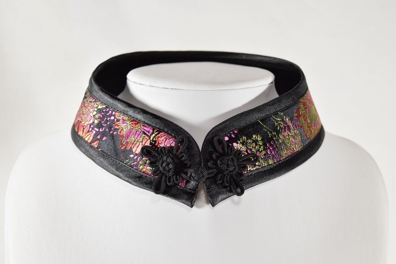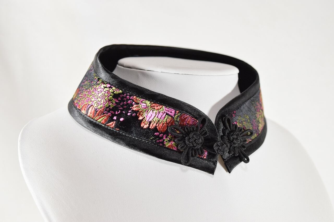 中華襟チョーカー(黒華)Lサイズ[AR-SC205]