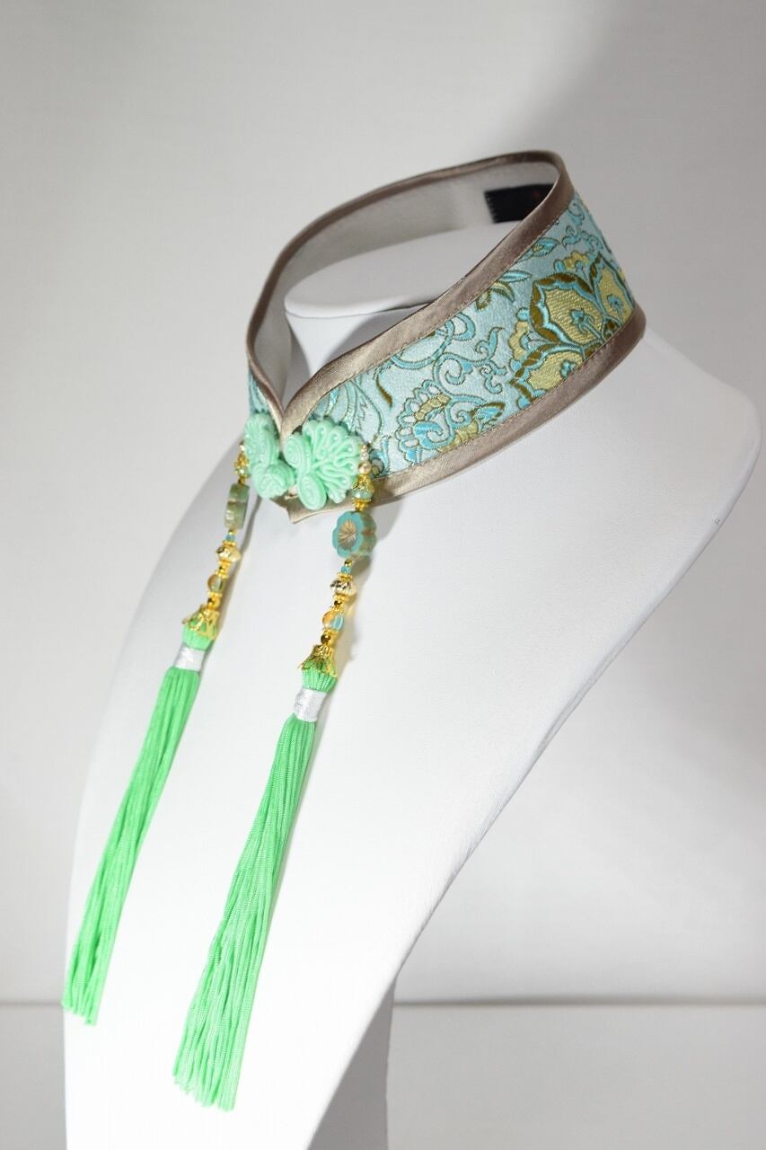 中華襟チョーカー(金白翠)Mサイズ[AR-SC208]