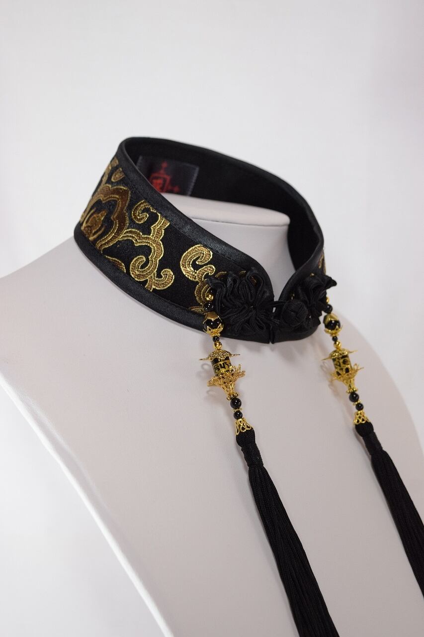 中華襟チョーカー(黒×金)Mサイズ[AR-SC211]