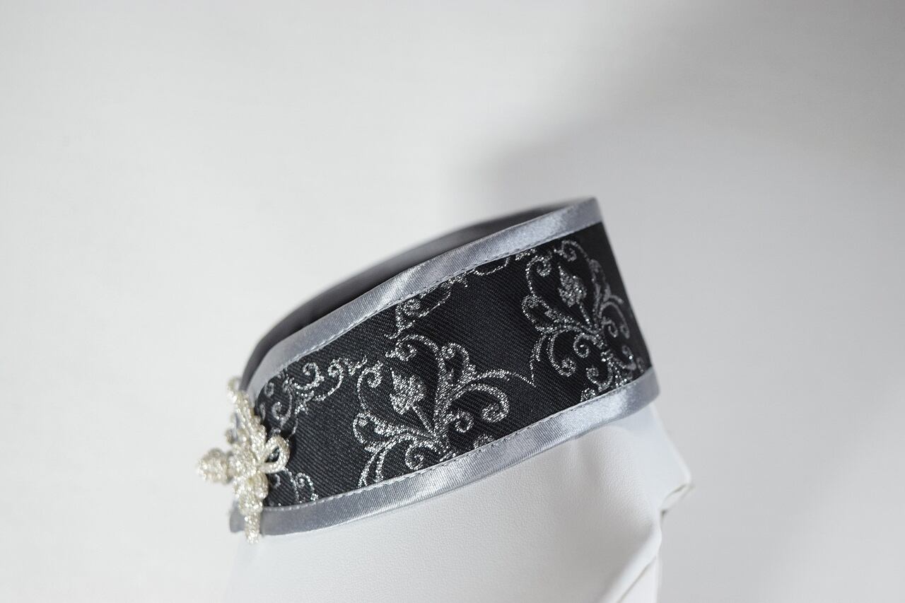 中華襟チョーカー(黒×銀)Sサイズ[AR-SC214]