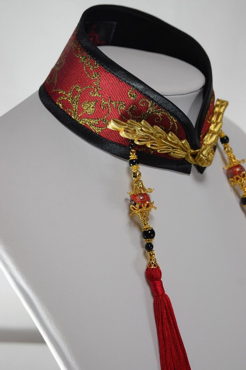 中華襟チョーカー(赤黒)Sサイズ[AR-SC219]