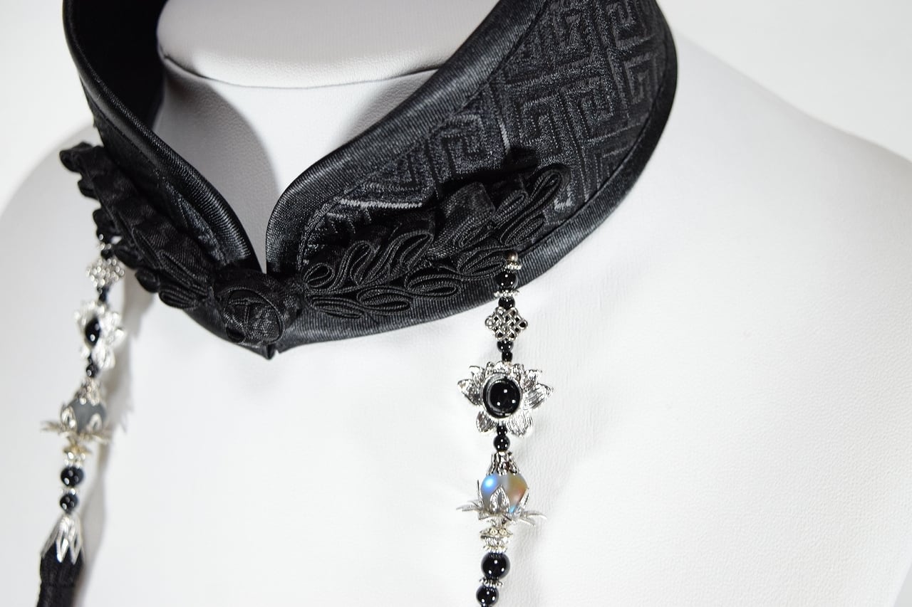 中華襟チョーカー(工字繋銀蓮)Sサイズ[AR-SC221]