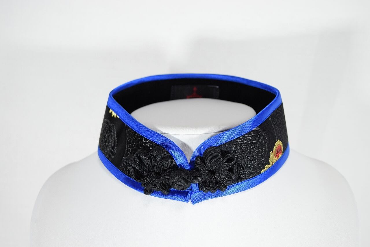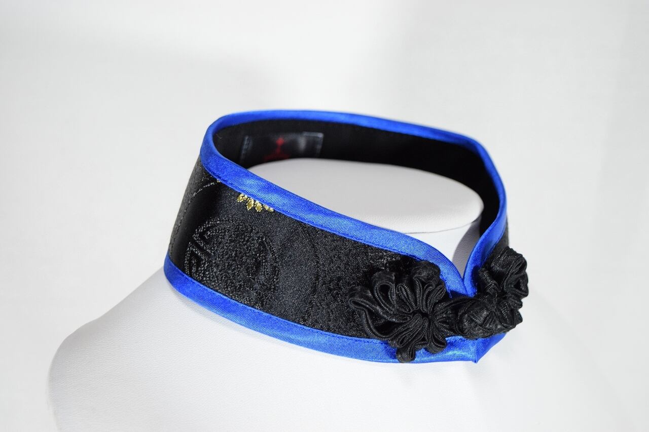 中華襟チョーカー(黒金菊花青)Mサイズ[AR-SC226]