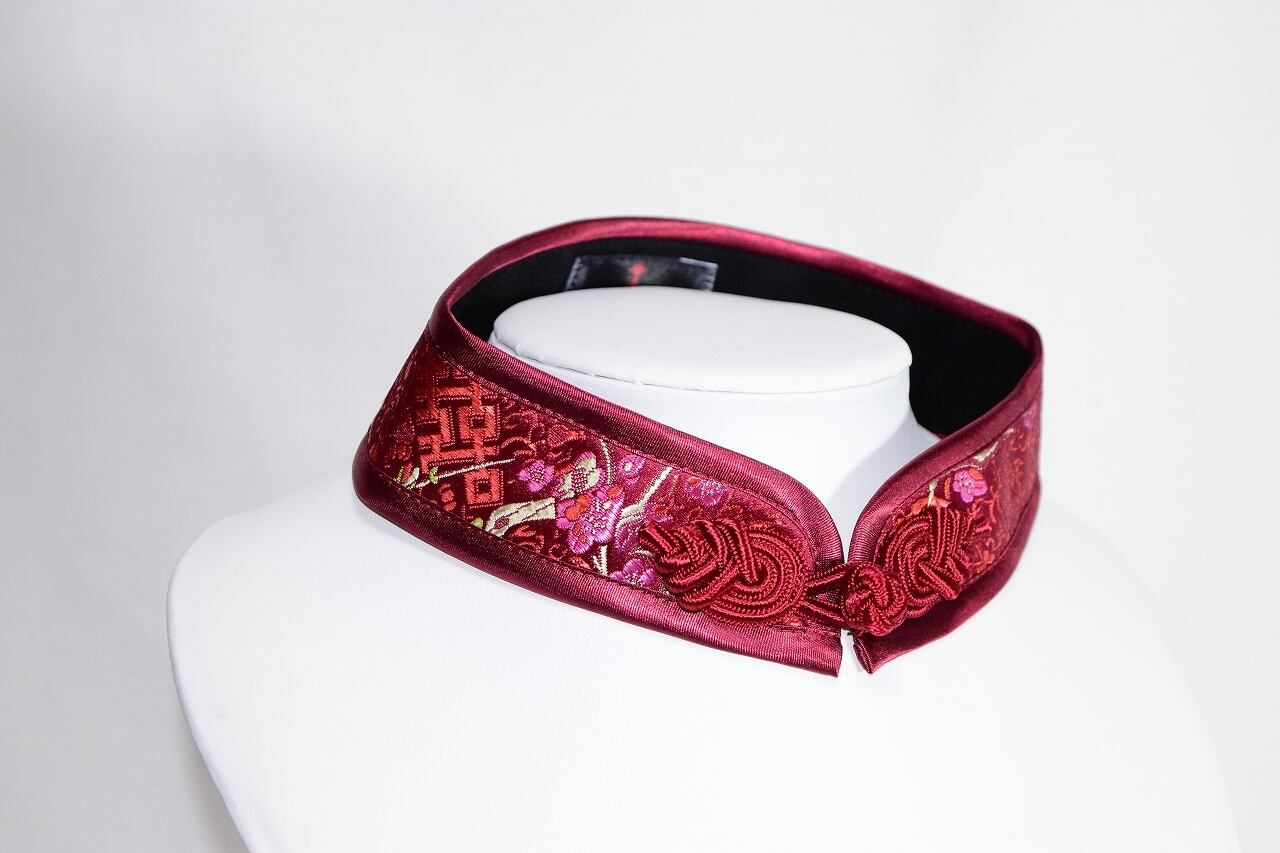 中華襟チョーカー(臙脂梅)Lサイズ[AR-SC227]