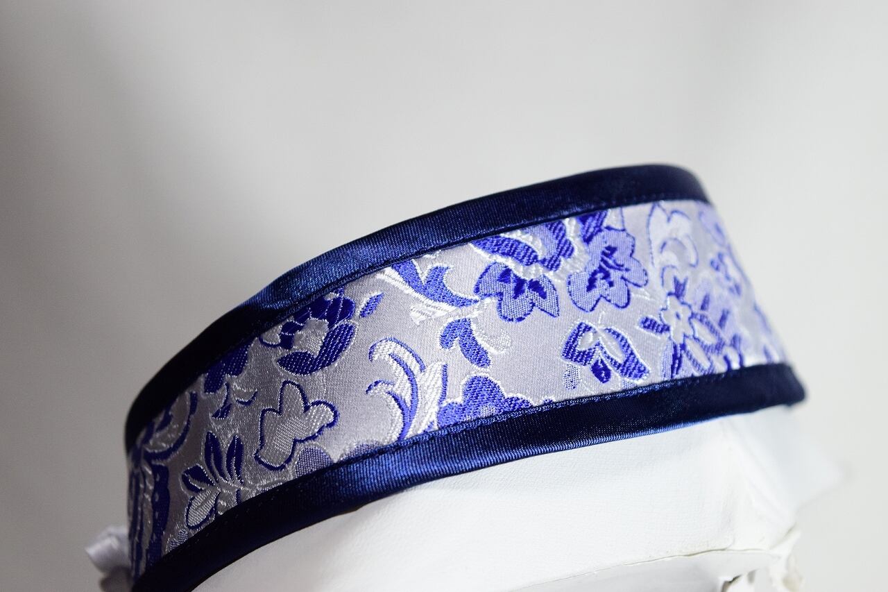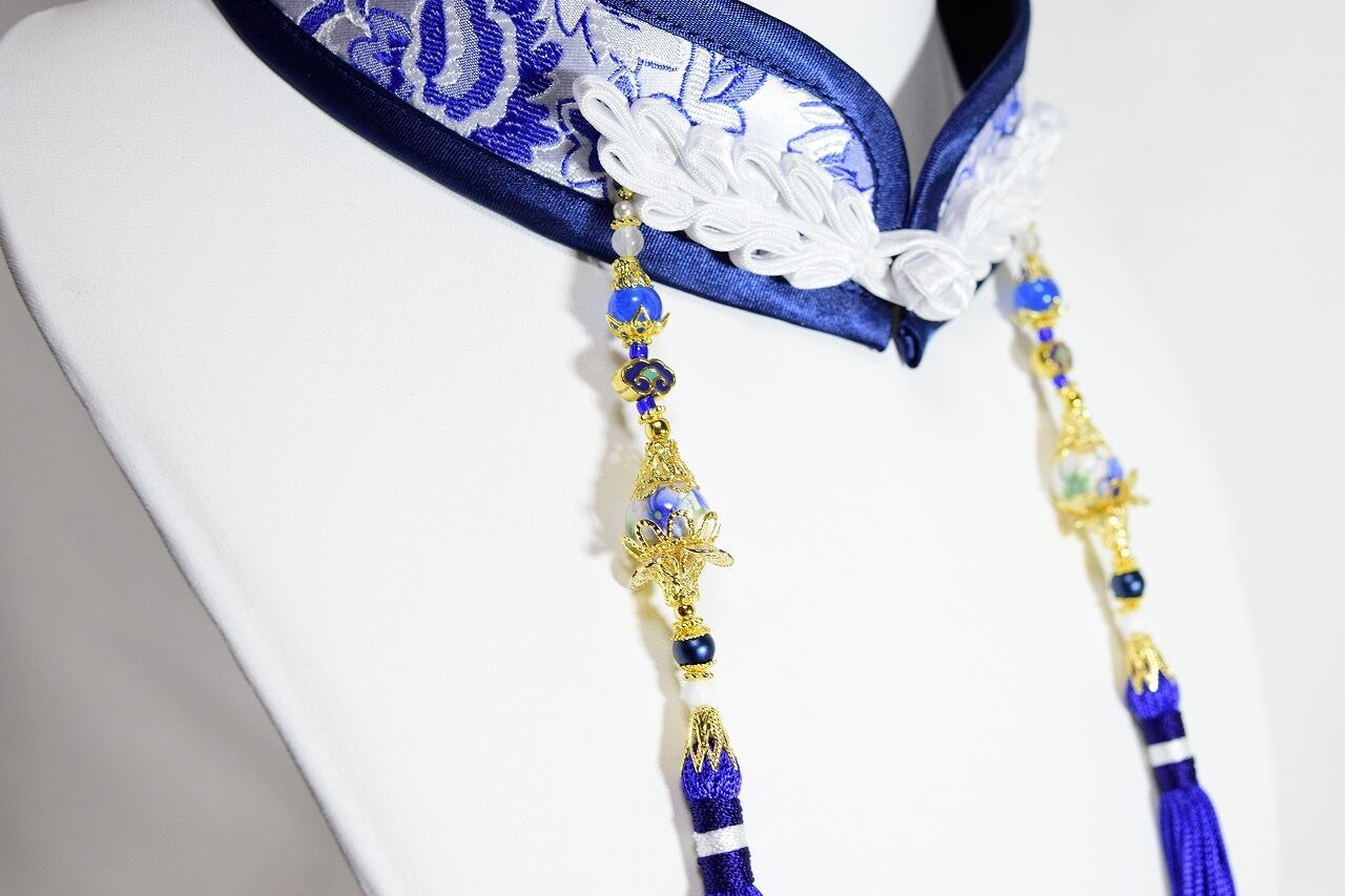 中華襟チョーカー(青白華)Lサイズ[AR-SC228]