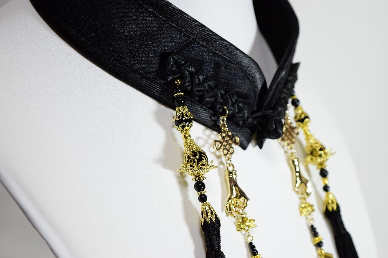 中華襟チョーカー(黒吉祥金蓮)Lサイズ[AR-SC229]