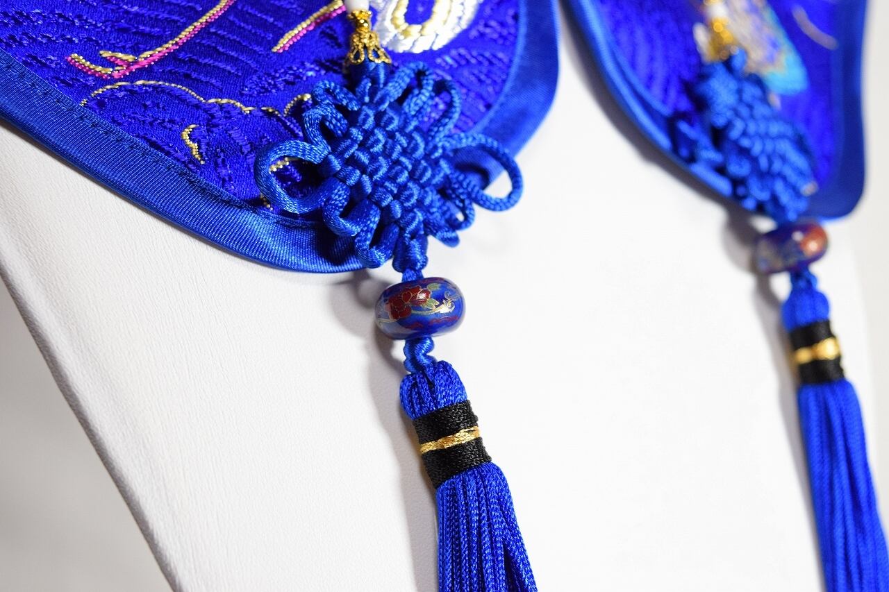 装飾:水色の花の絵玉、蒼、金色の装飾
