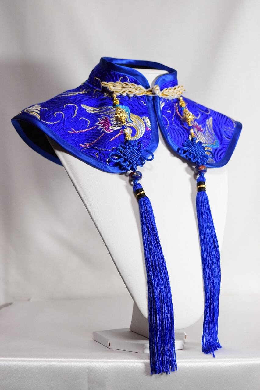 中華付け襟(白鶴青吉祥)[AR-DC119]
