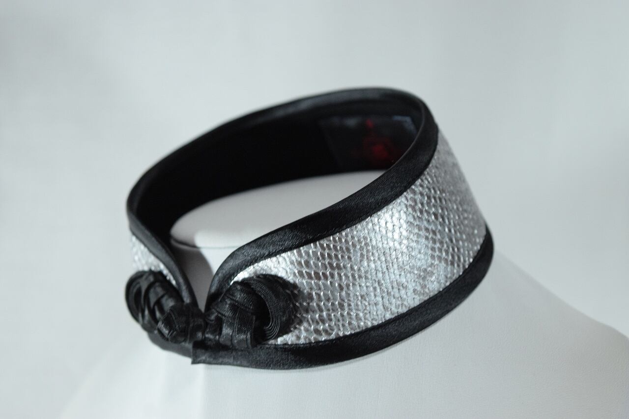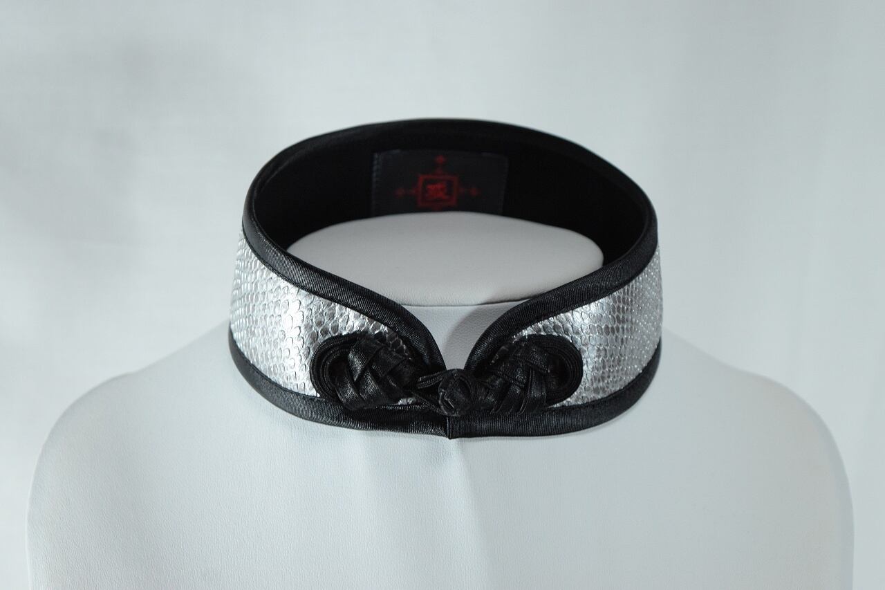 中華襟チョーカー(銀蛇合皮)Sサイズ[AR-SFL042]