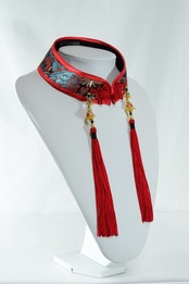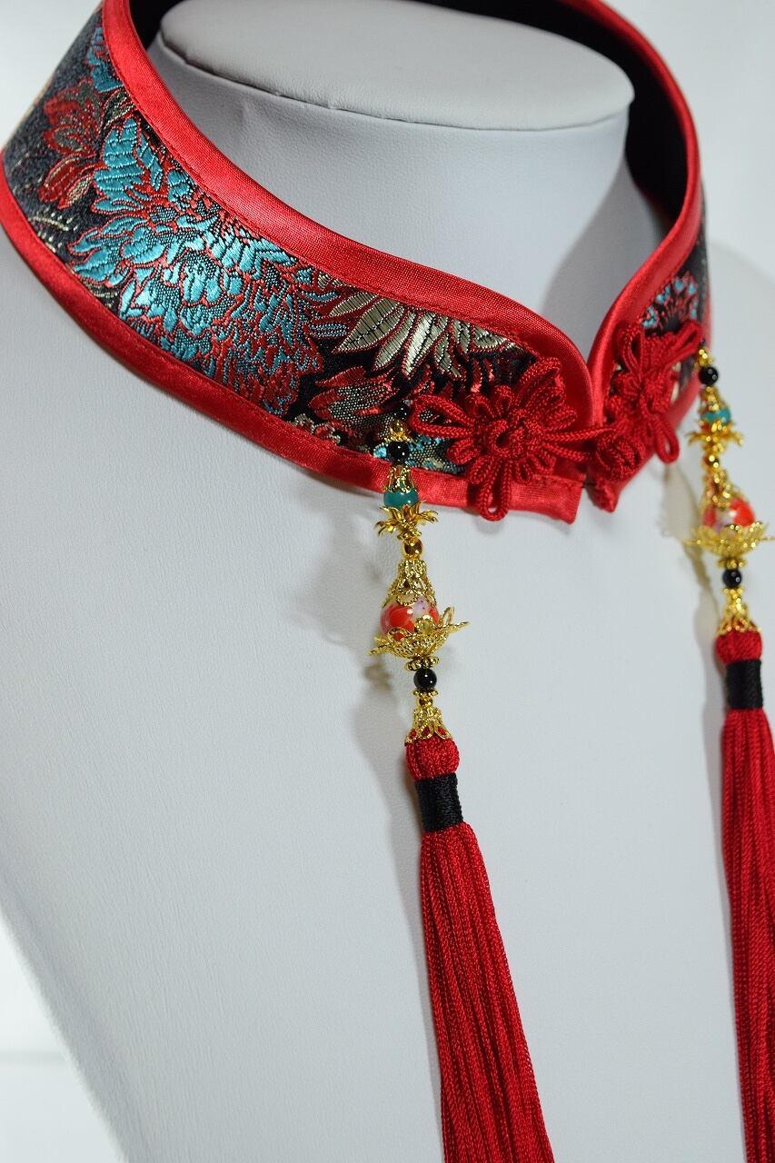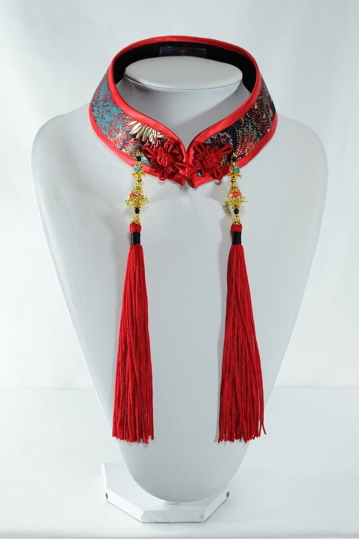中華襟チョーカー(黒赤華)Lサイズ[AR-SC247]