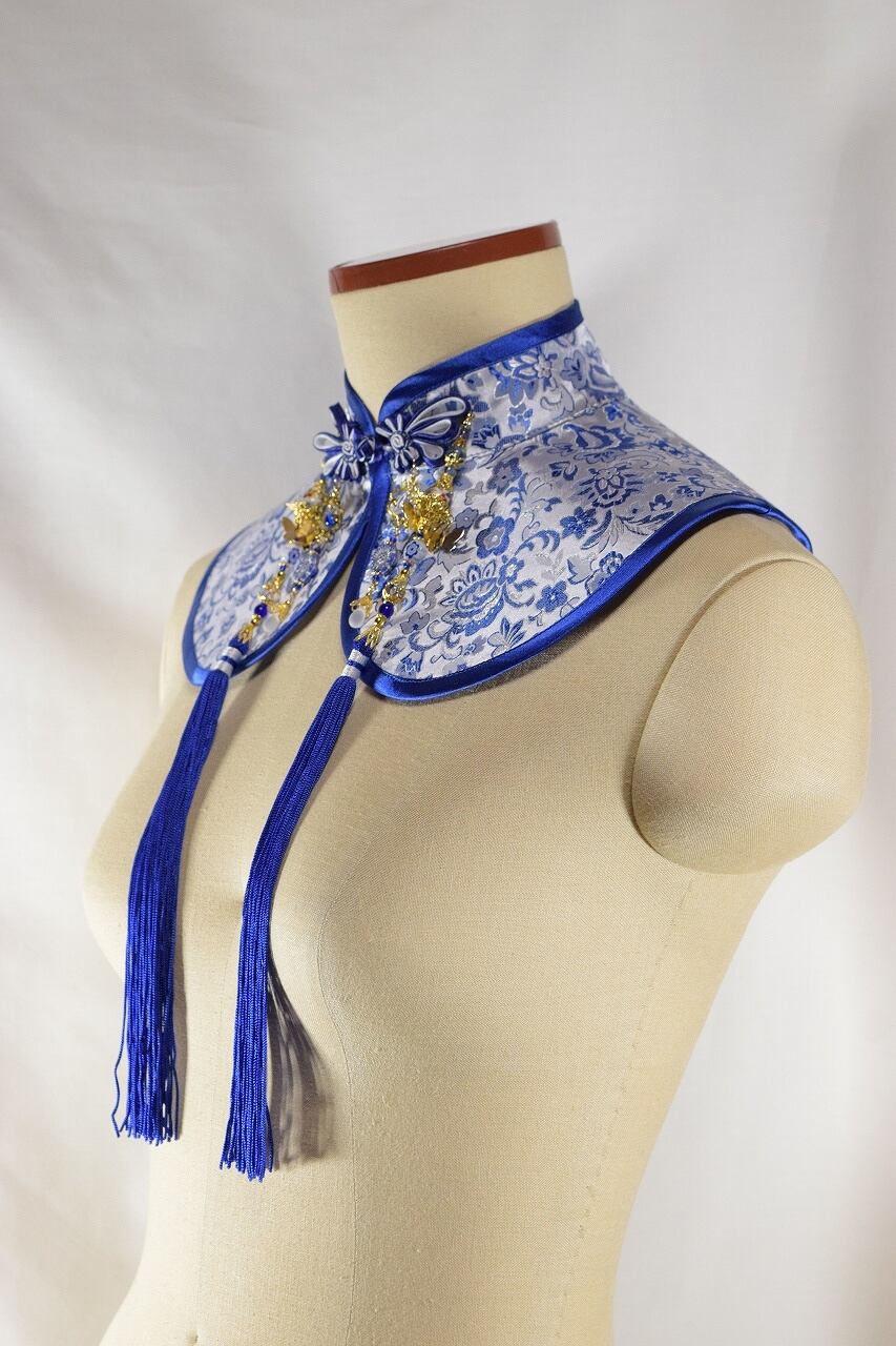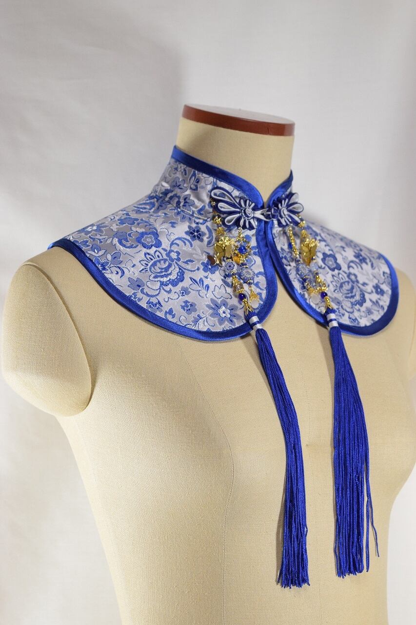 中華付け襟Sサイズ(青白華)[AR-DC128]