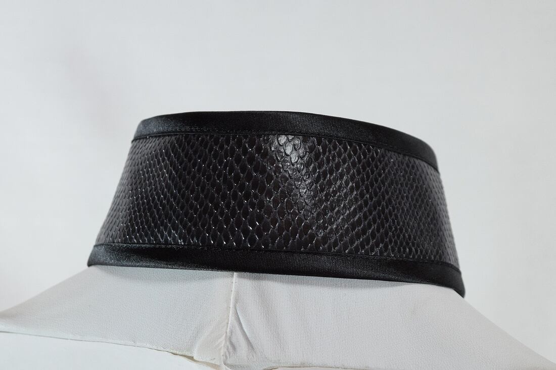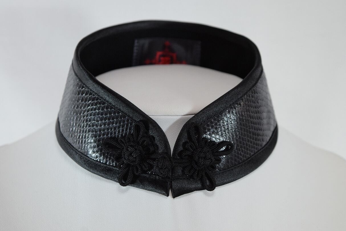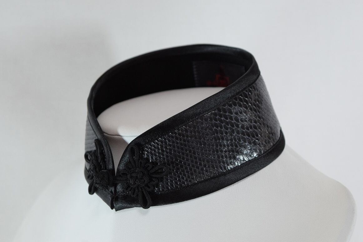 中華襟チョーカー(黒蛇合皮)Sサイズ[AR-SFL043]