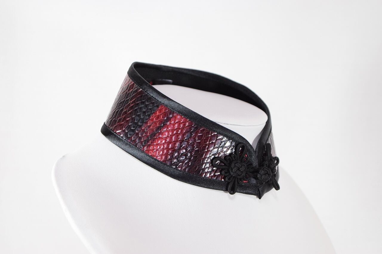 中華襟チョーカー(臙脂蛇合皮)Mサイズ[AR-SFL045]