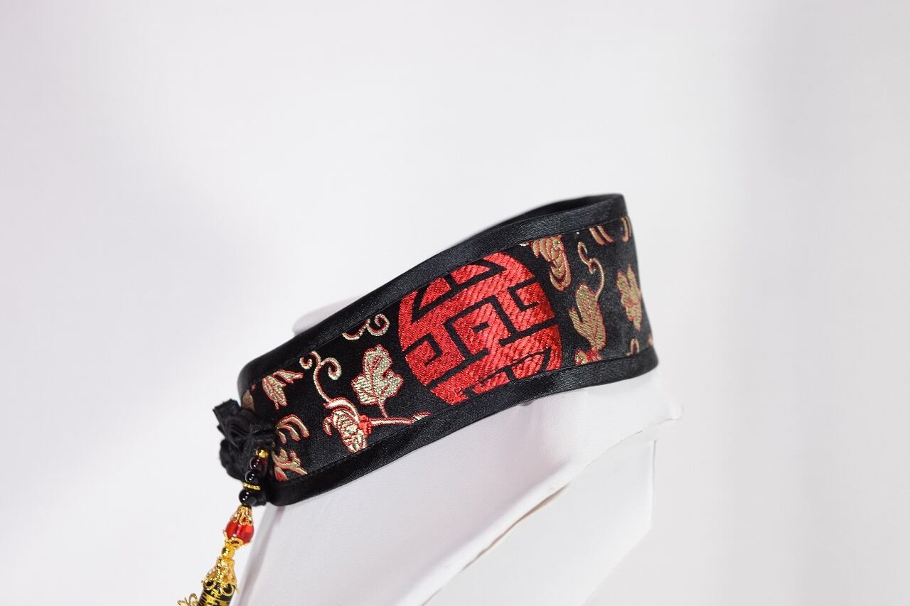 中華襟チョーカー(赤柘榴円紋)Mサイズ[AR-SC261]