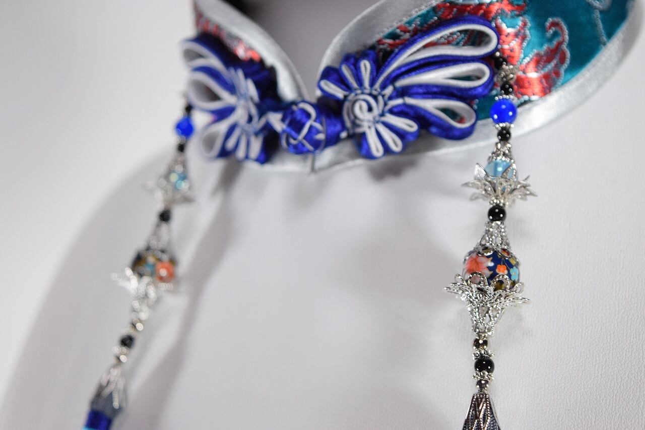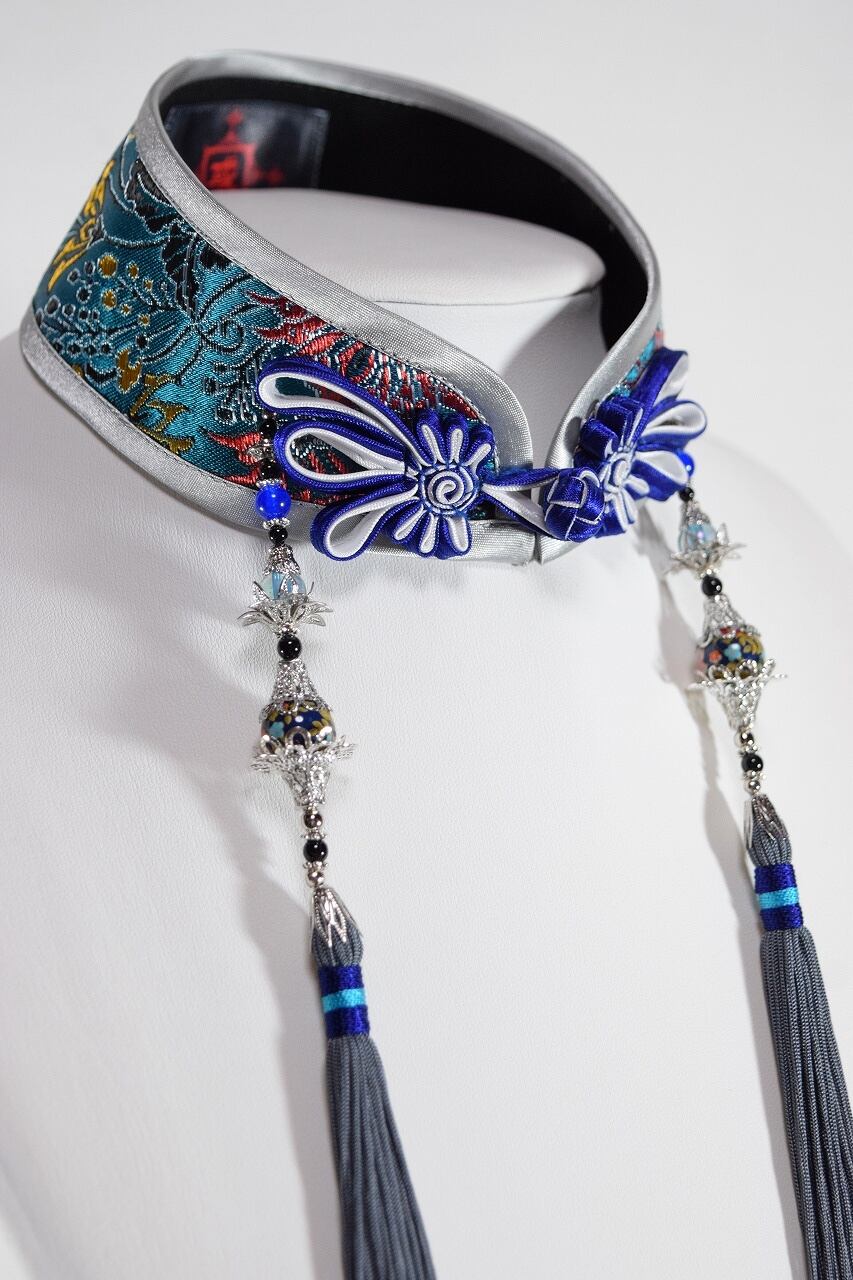 中華襟チョーカー(銀碧)Sサイズ[AR-SC277]