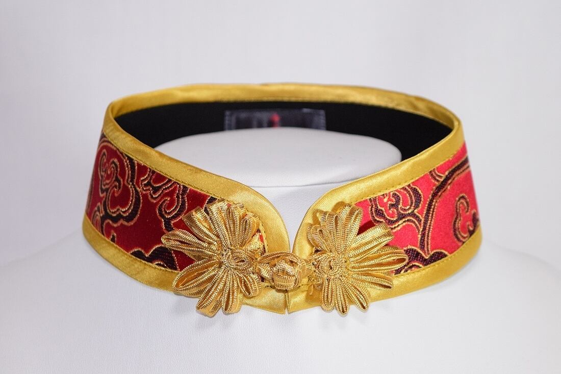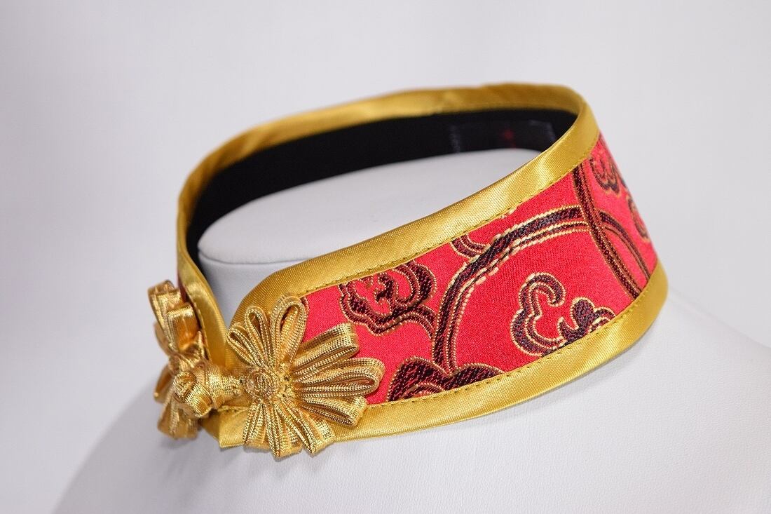 中華襟チョーカー(朱赤金紋様)Mサイズ[AR-SC280]