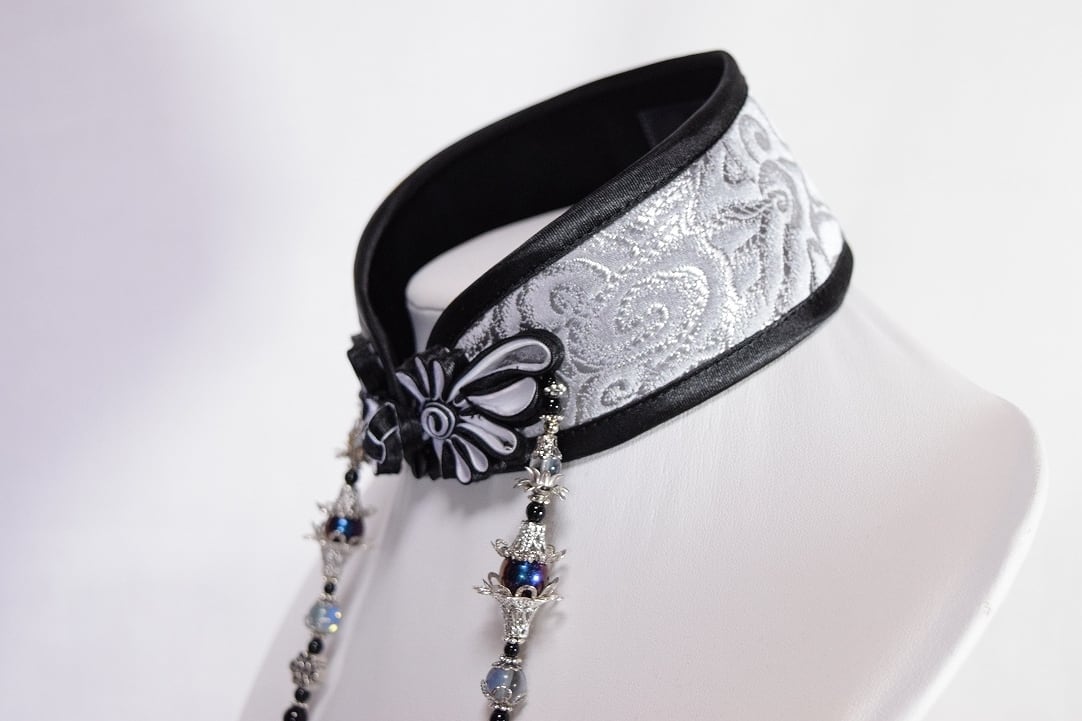中華襟チョーカー(銀雲)Sサイズ[AR-SC286]