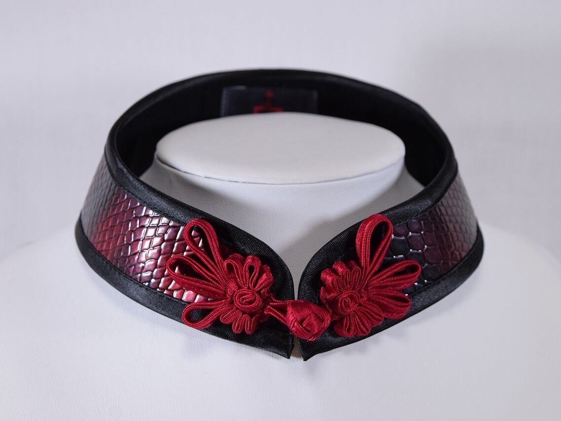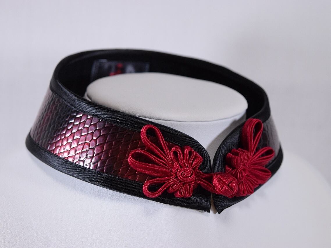 中華襟チョーカー(臙脂蛇合皮)Lサイズ[AR-SFL049]