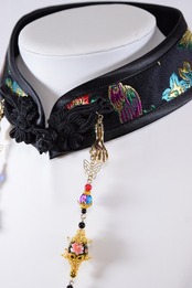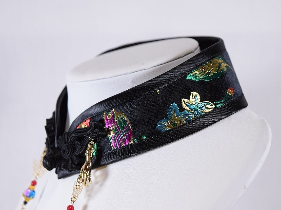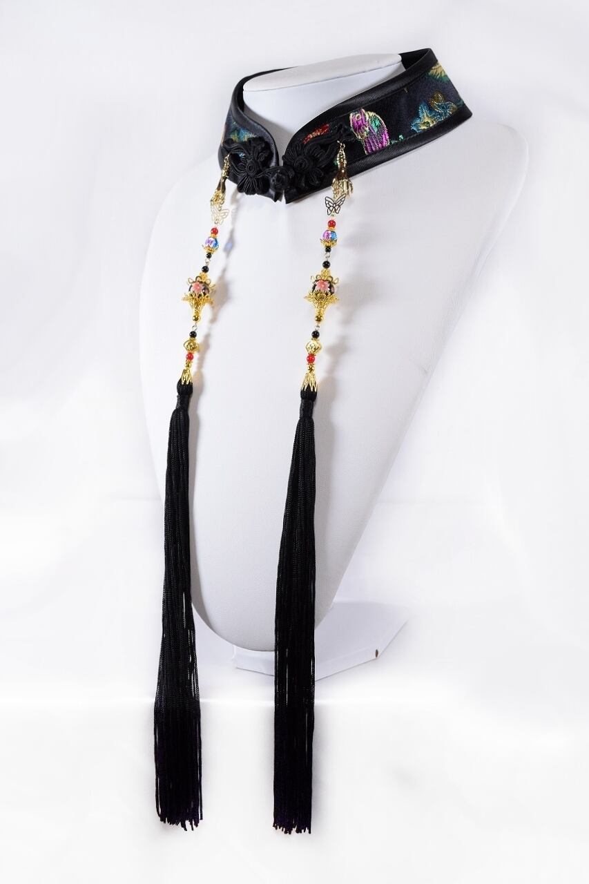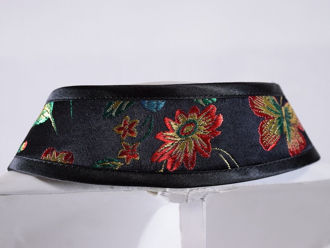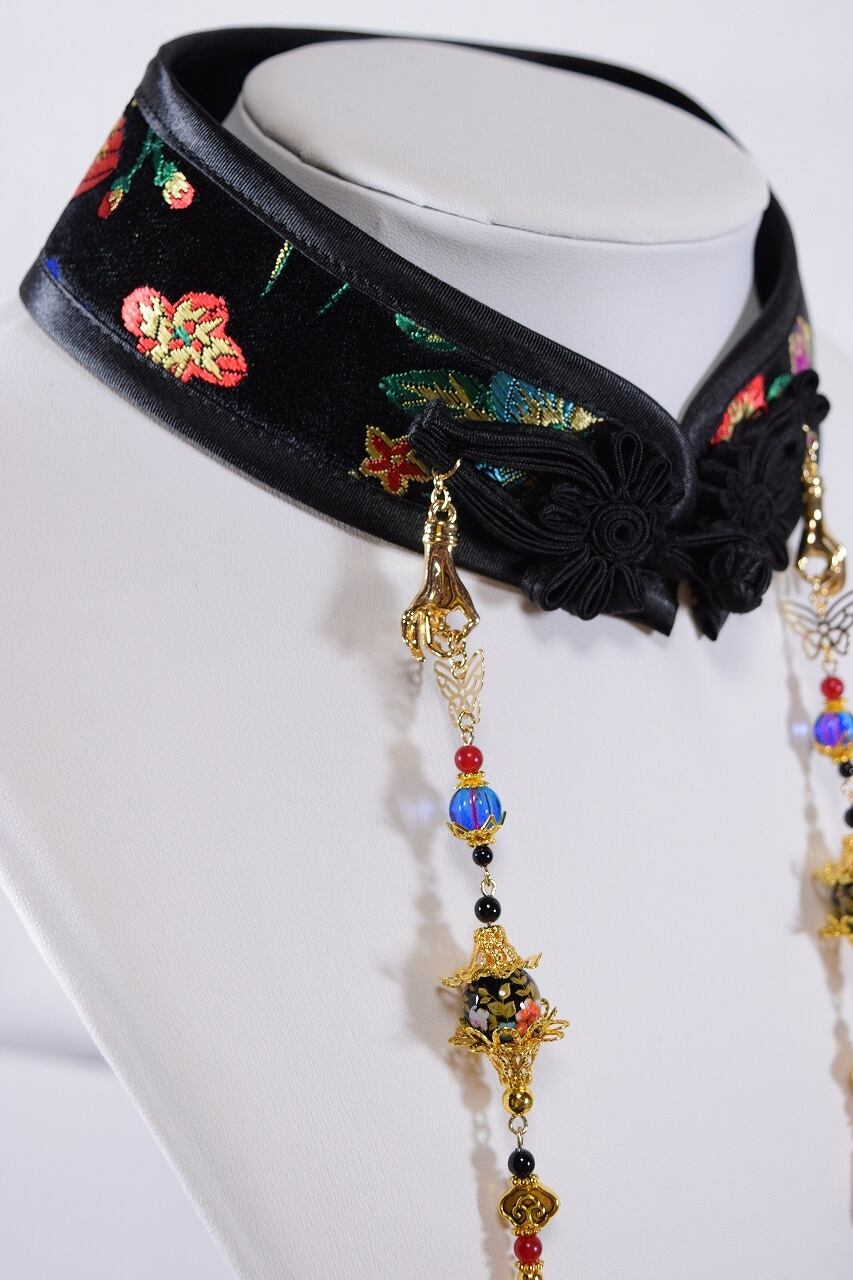 中華襟チョーカー(黒花蝶)Lサイズ[AR-SC298]